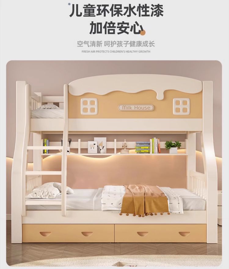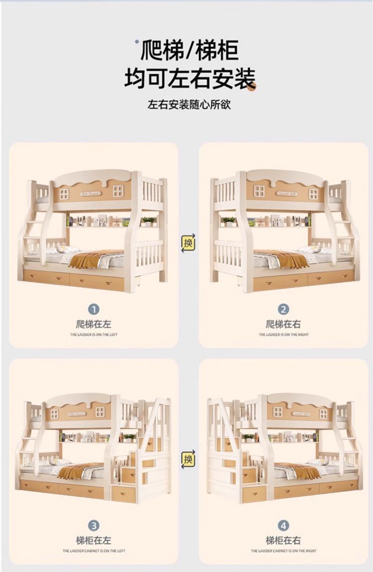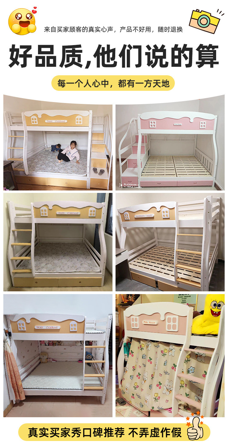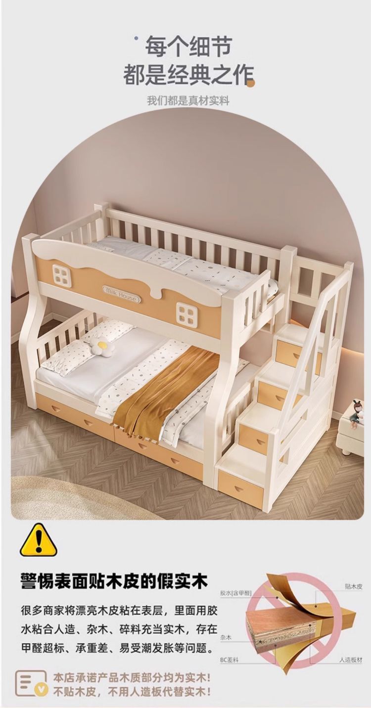풀 솔리드 우드 벙크 침대 이층 침대 높고 낮은 침대 어머니 침대 다기능 작은 아파트 어린이 벙크 나무 침대스토어 가기