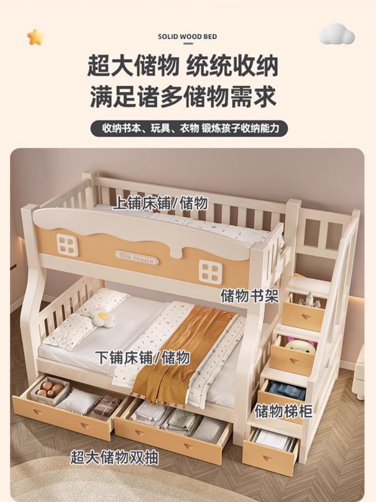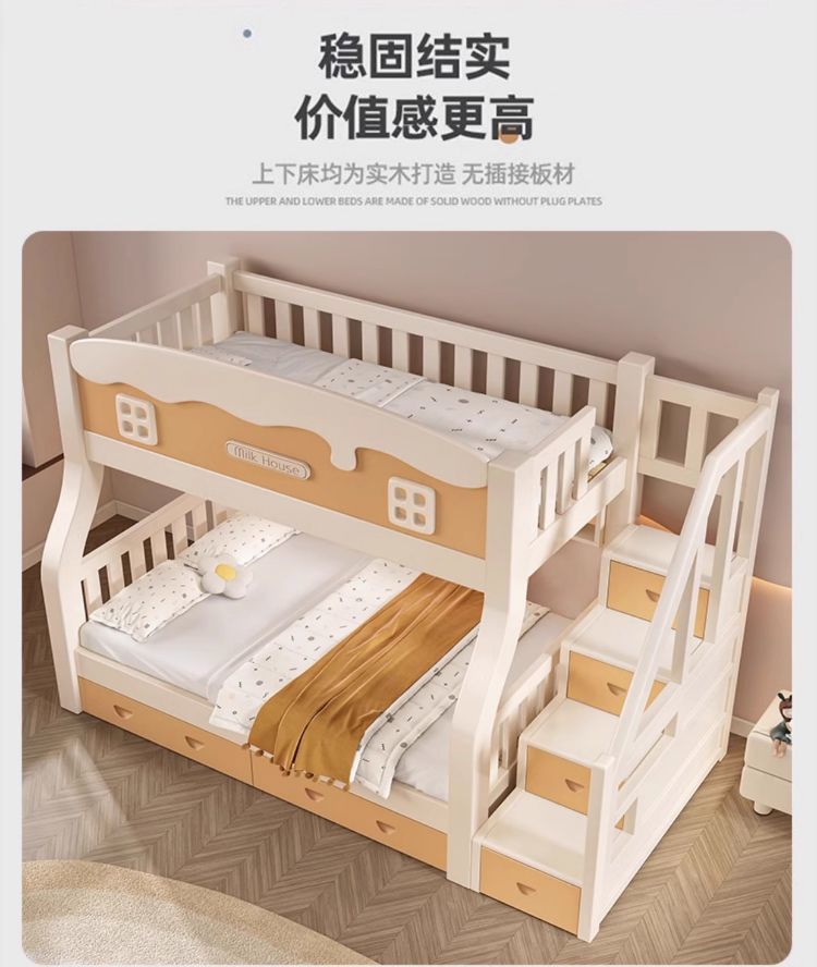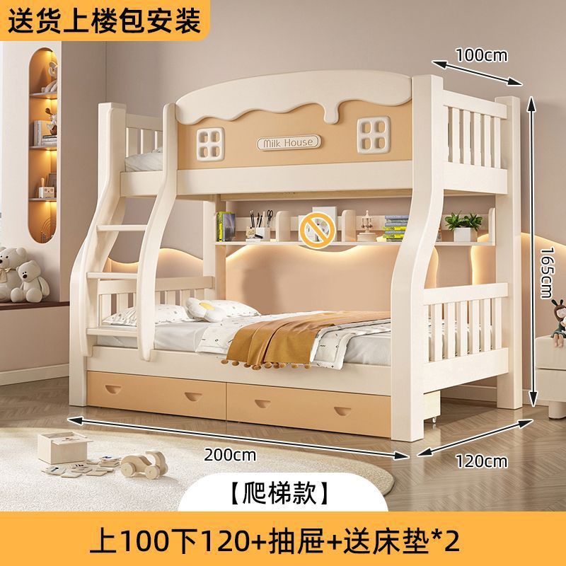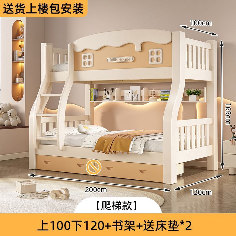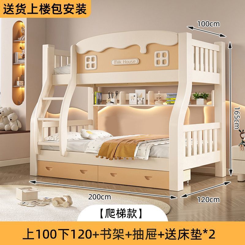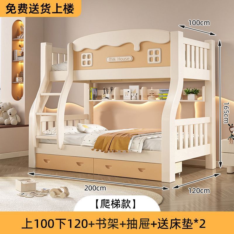 풀 솔리드 우드 벙크 침대 이층 침대 높고 낮은 침대 어머니 침대 다기능 작은 아파트 어린이 벙크 나무 침대