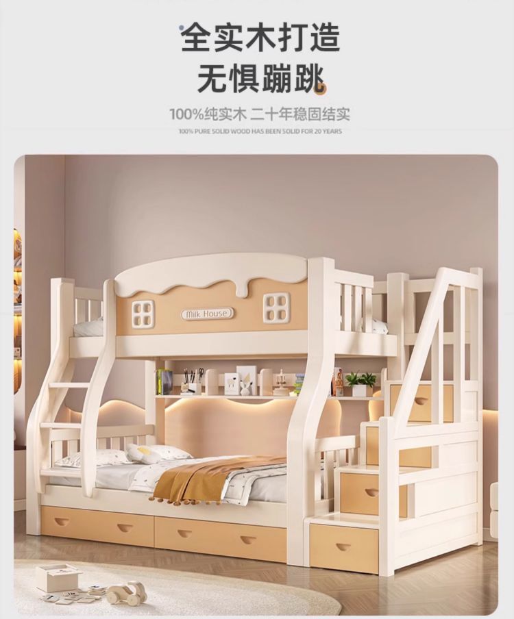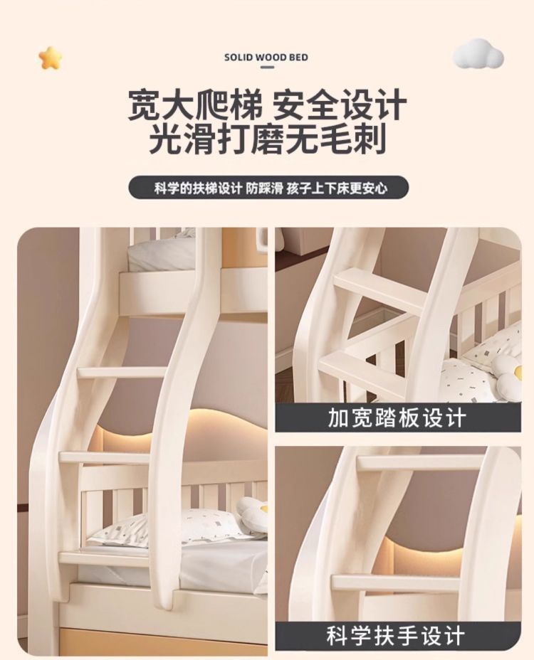 • 크림사다리 + 서랍 + 매트리스*2 [위층 배송]