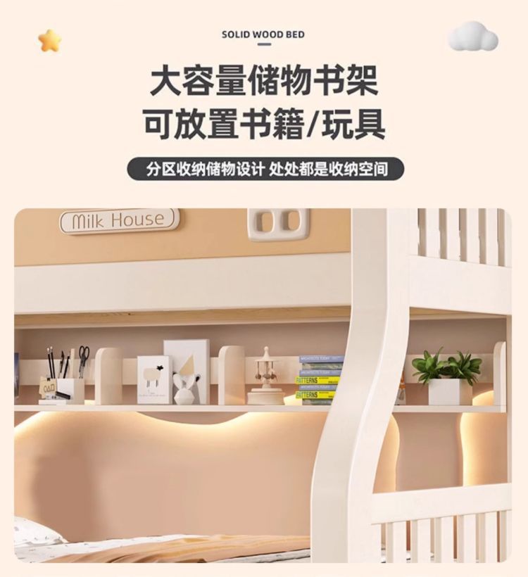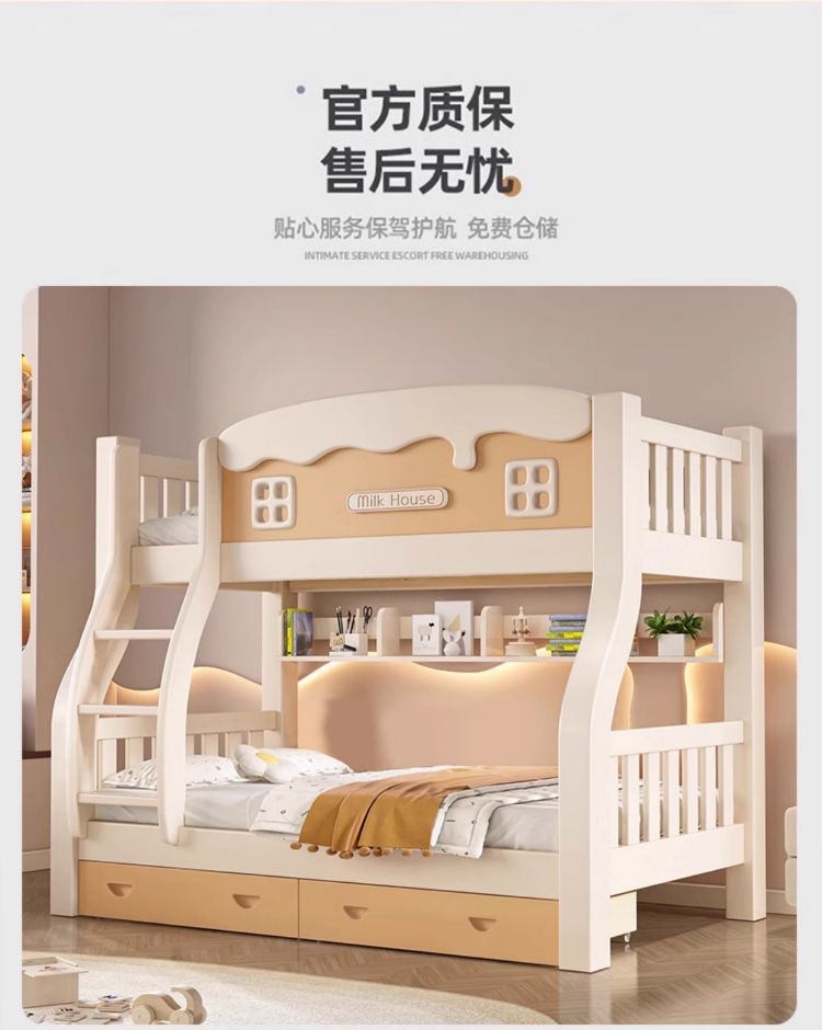 • 크림사다리 + 책장 + 서랍 + 매트리스*2 [위층 배송]