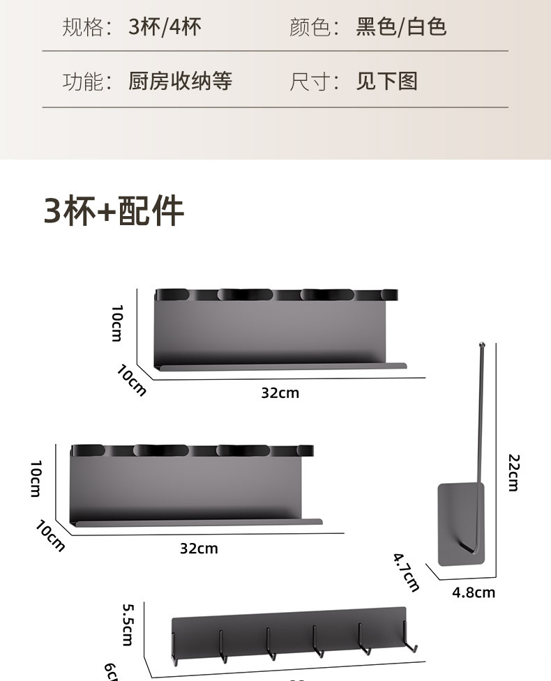 • 자석+접착스티커 3컵 - 블랙 [TY-CF-CT-23F-C]