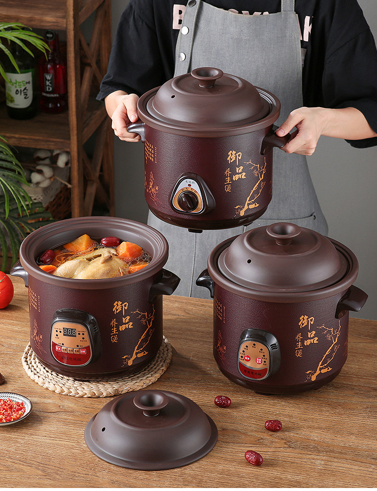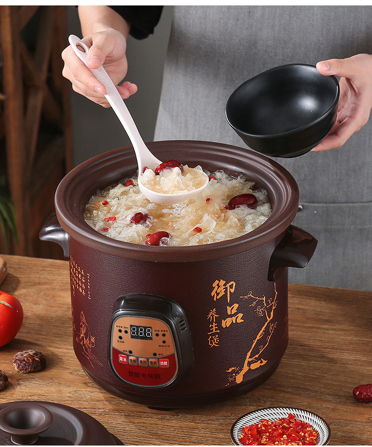 완전 자동 2.5-6L 전기 스튜 세라믹 수프 캐서롤 가정용 죽 아티팩트 다기능 건강 보라색 도매스토어 가기