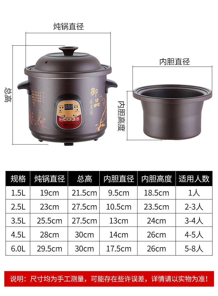 • 6.0리터 흑자색 점토 예약 전기스튜 냄비