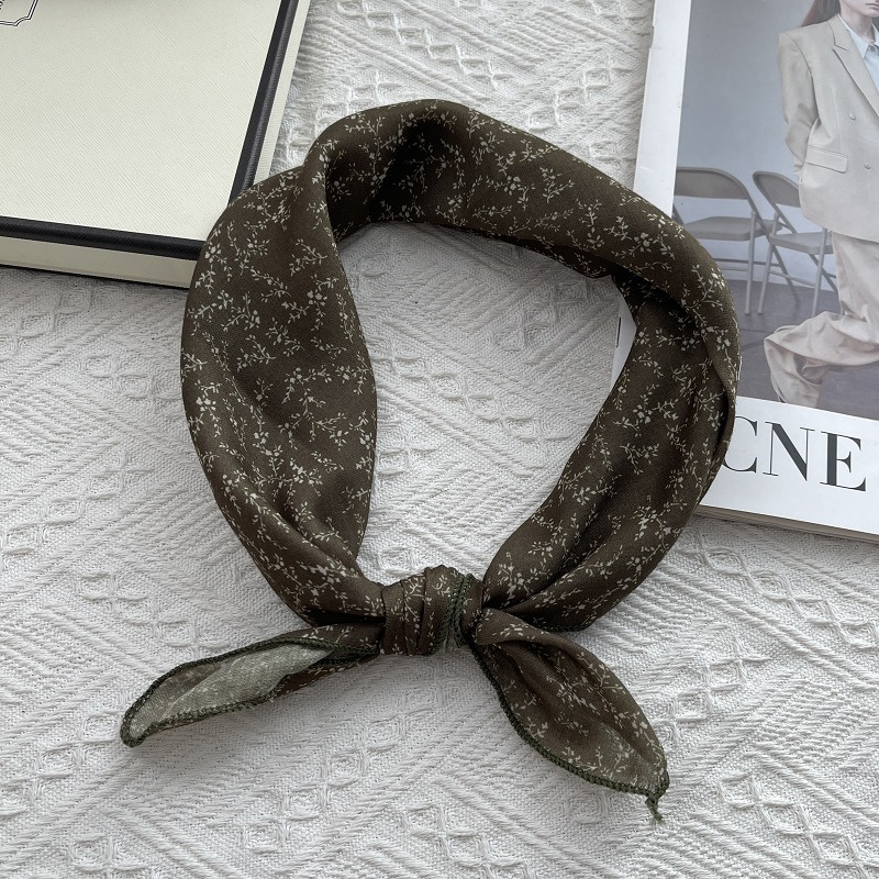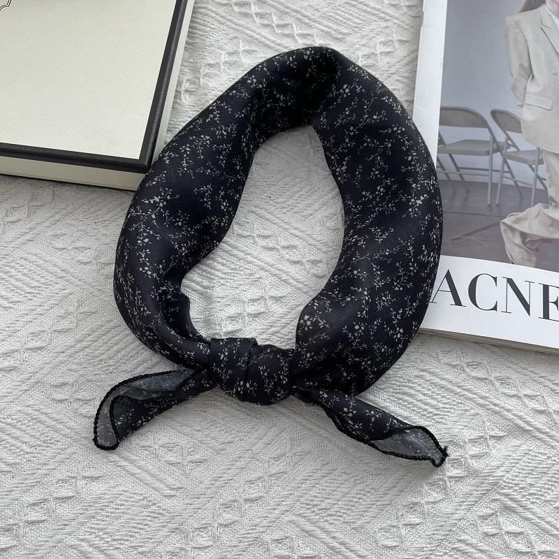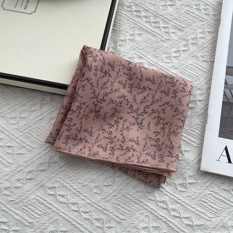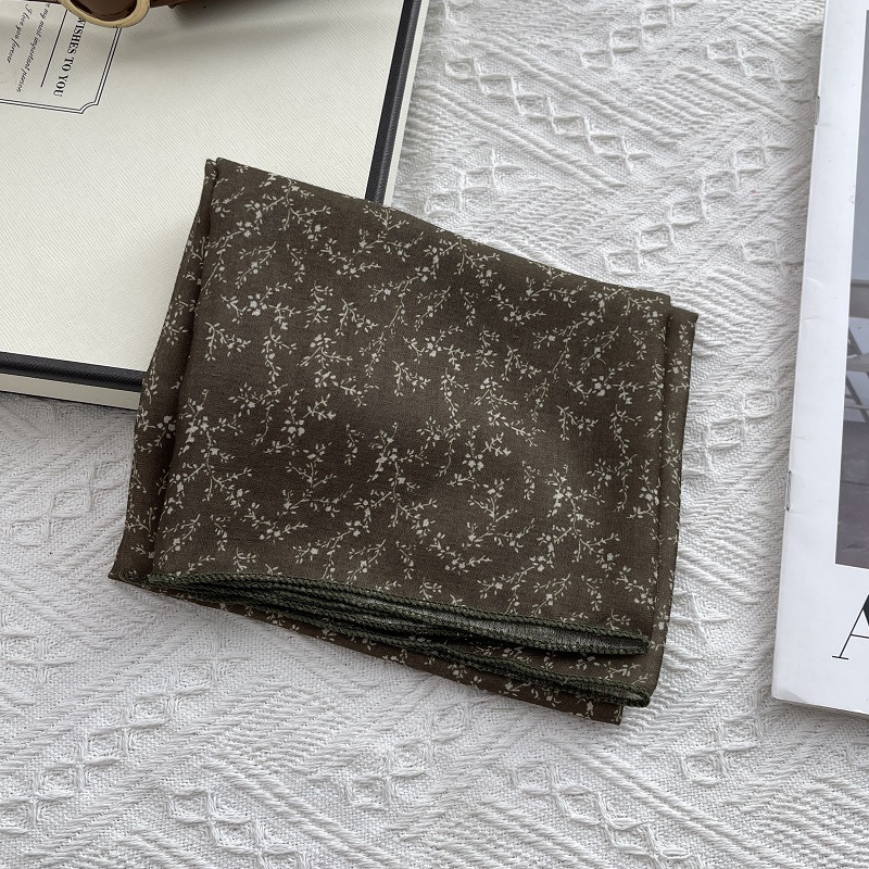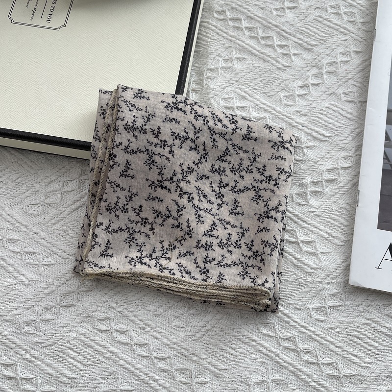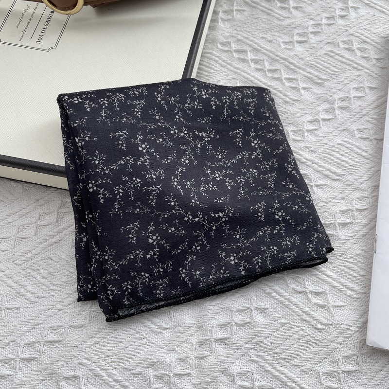 2025 봄 새 스카프 여성의 작은 광장 스카프 면과 린넨 스카프 신선한 블랙 따뜻한 복고풍 장식 스카프
