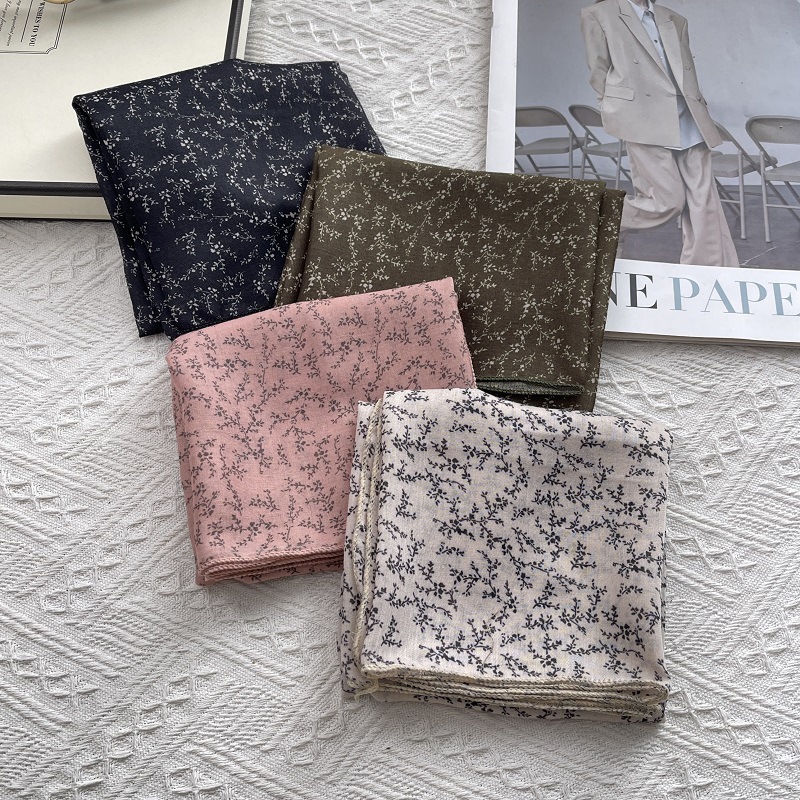 2025 봄 새 스카프 여성의 작은 광장 스카프 면과 린넨 스카프 신선한 블랙 따뜻한 복고풍 장식 스카프스토어 가기