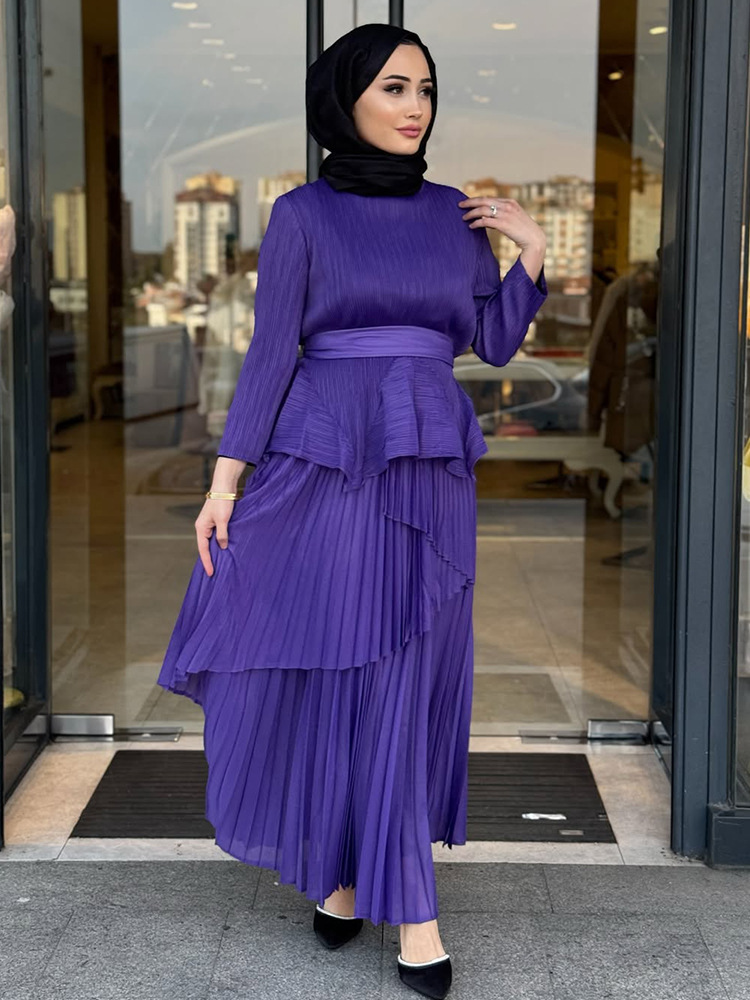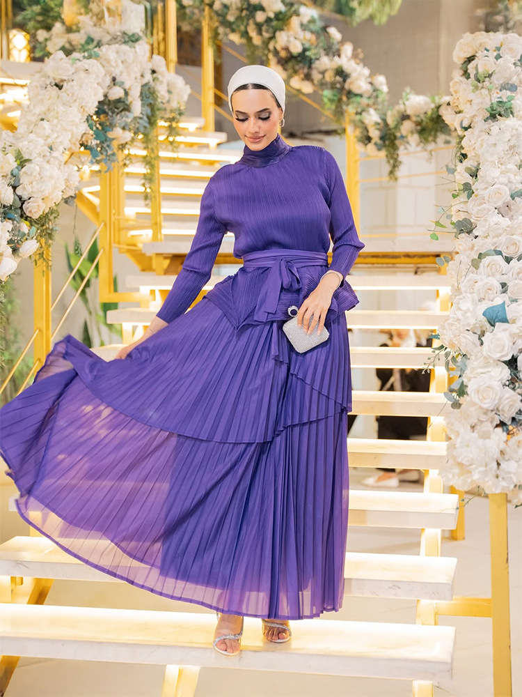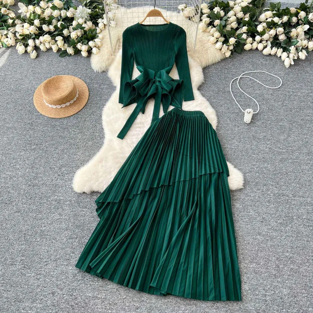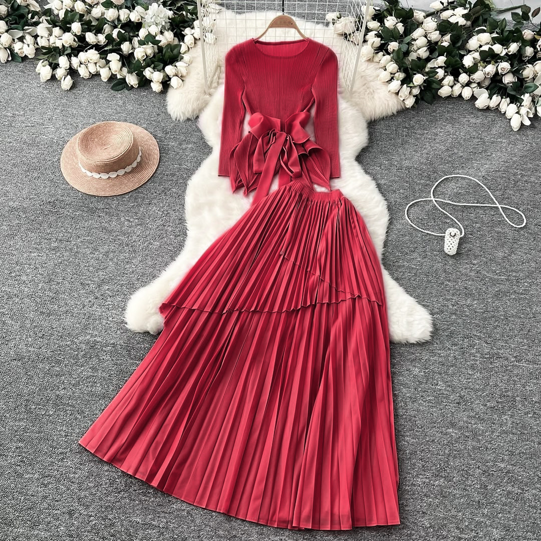 플러스 사이즈 여자 슬리밍 원피스 여자 하이 엔드 Pleated Top Pleated Skirt 투피스 Miyake Pleated 원피스
