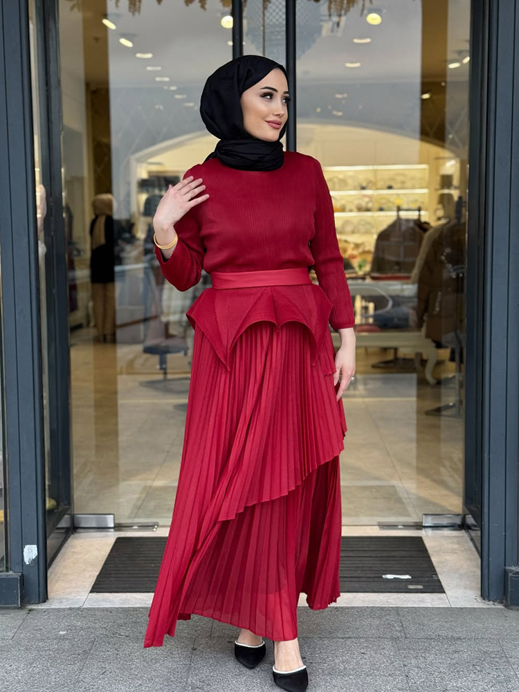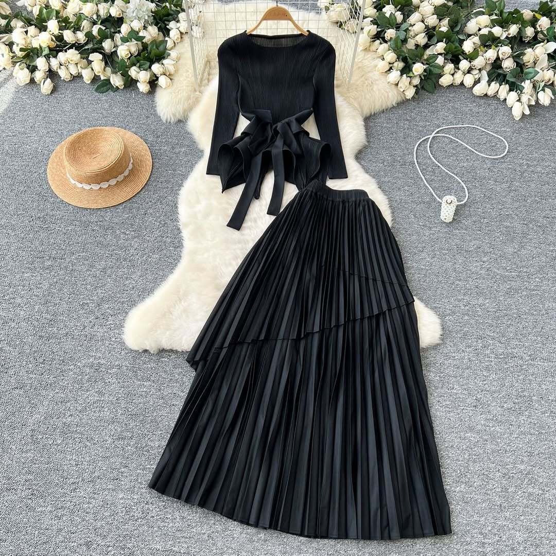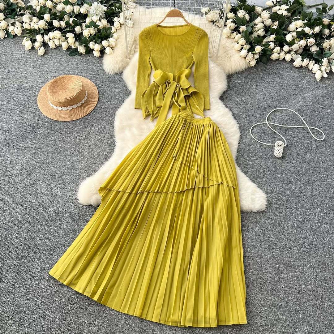 플러스 사이즈 여자 슬리밍 원피스 여자 하이 엔드 Pleated Top Pleated Skirt 투피스 Miyake Pleated 원피스스토어 가기