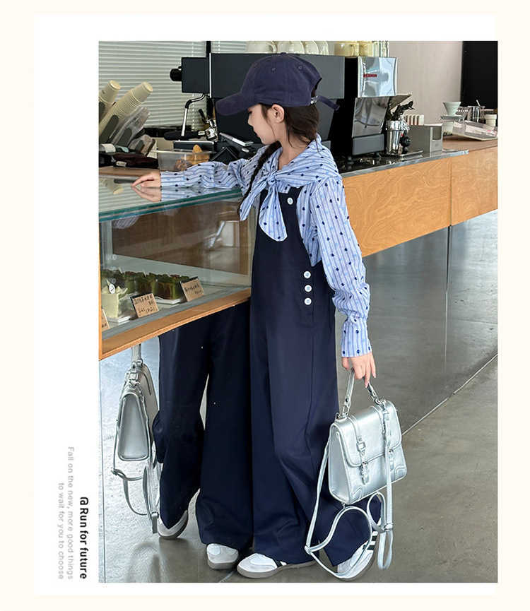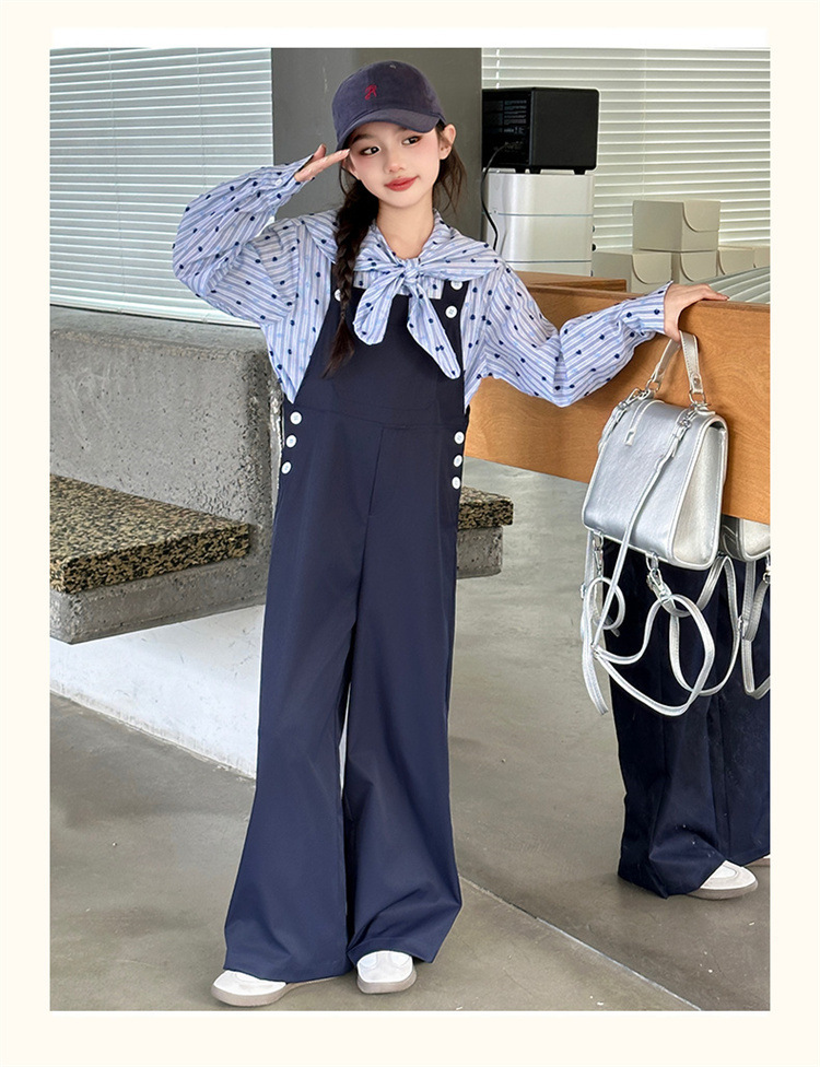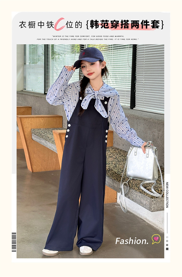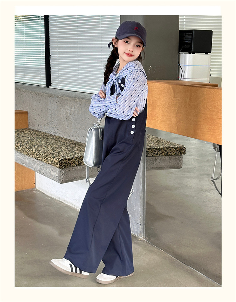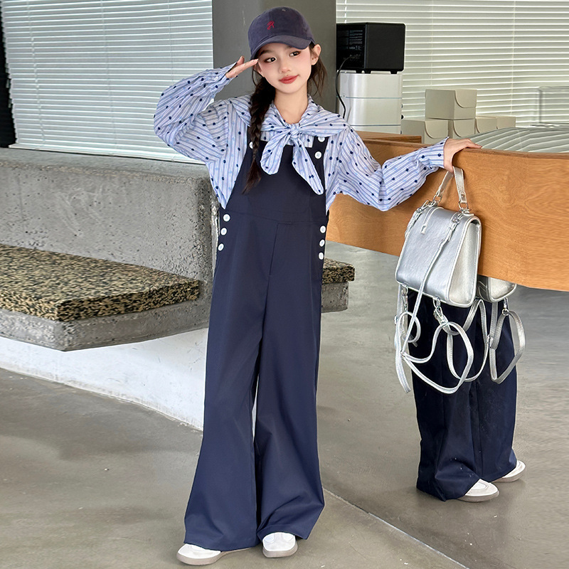 여자 아카데미 스타일 세트 2025 봄 원피스 새로운 한국식 번들 팬츠 소녀 폴도트 셔츠 투피스 세트스토어 가기