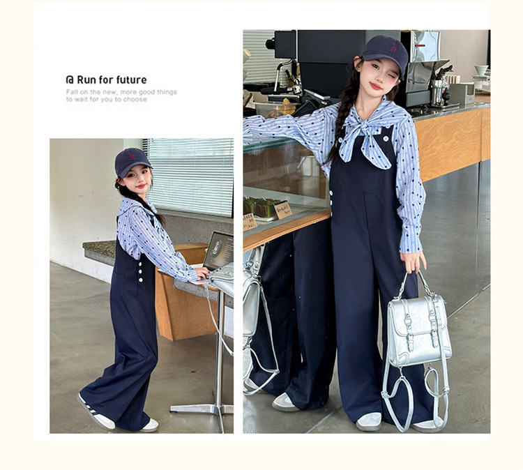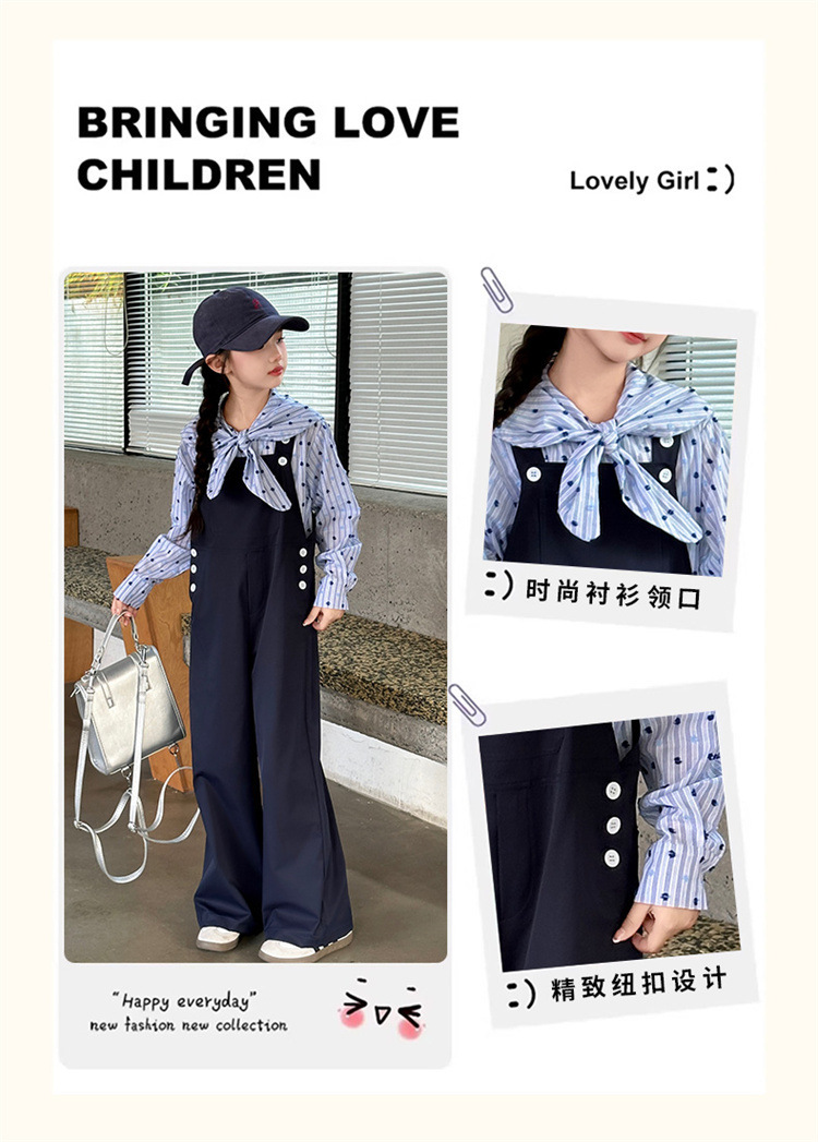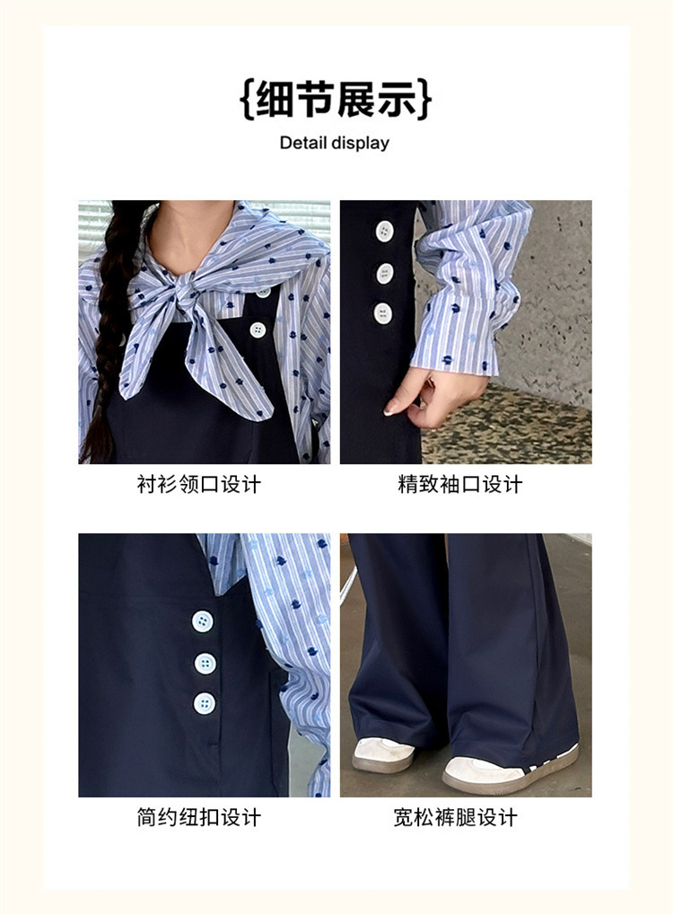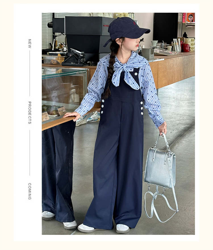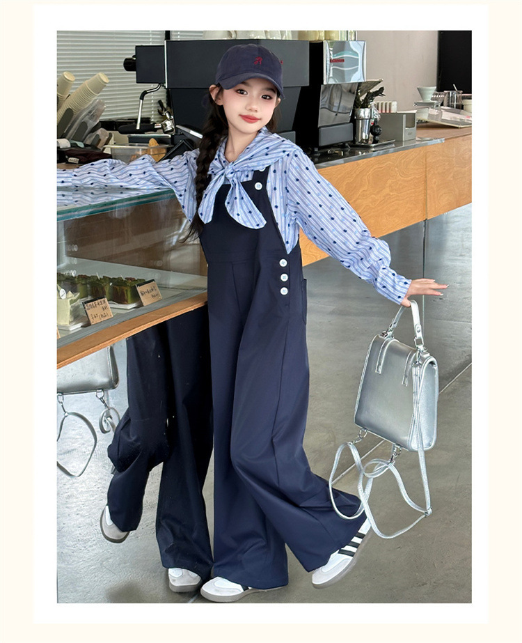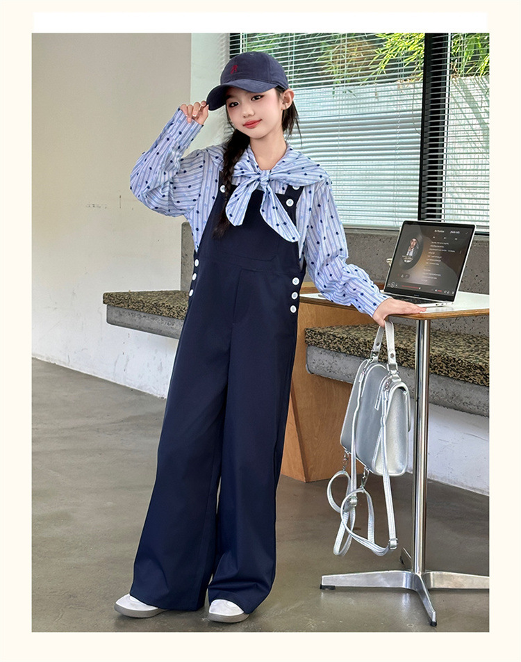 여자 아카데미 스타일 세트 2025 봄 원피스 새로운 한국식 번들 팬츠 소녀 폴도트 셔츠 투피스 세트스토어 가기