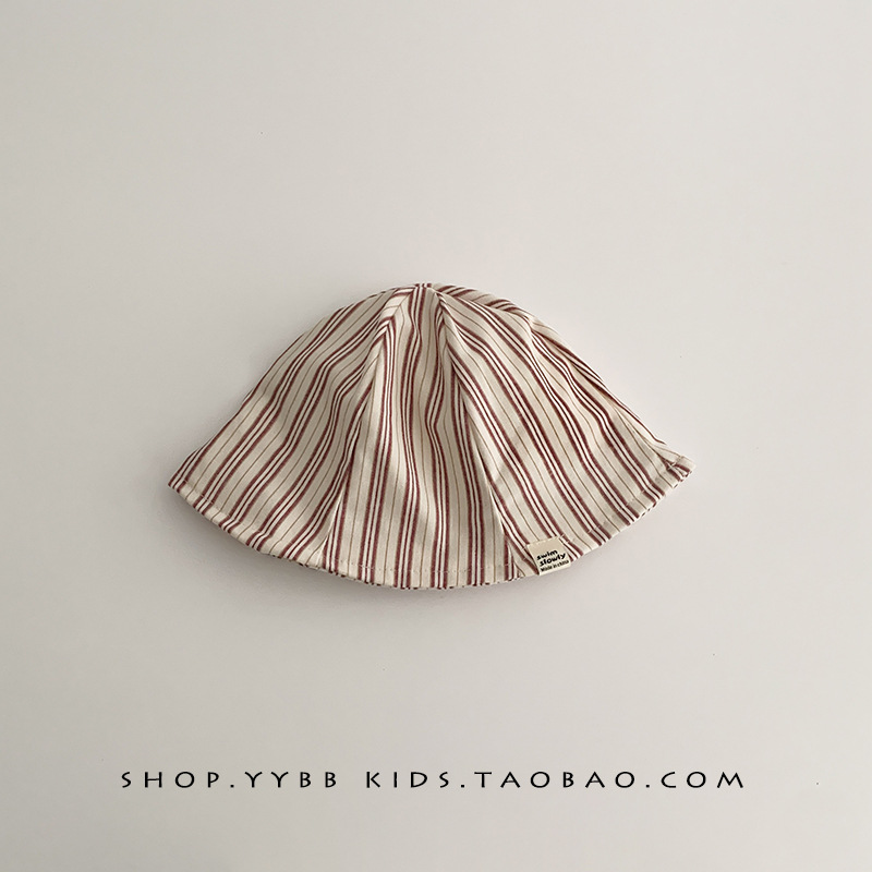 일본 스타일 작은 스타일 어린이 어부 모자 간단한 줄무늬 헝겊 라벨 올매치 소년 및 소녀의 햇살 모자 양동이 모자스토어 가기