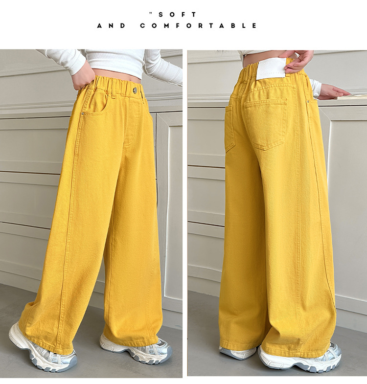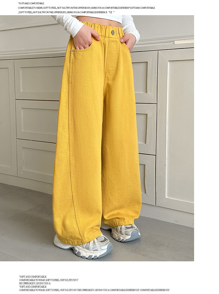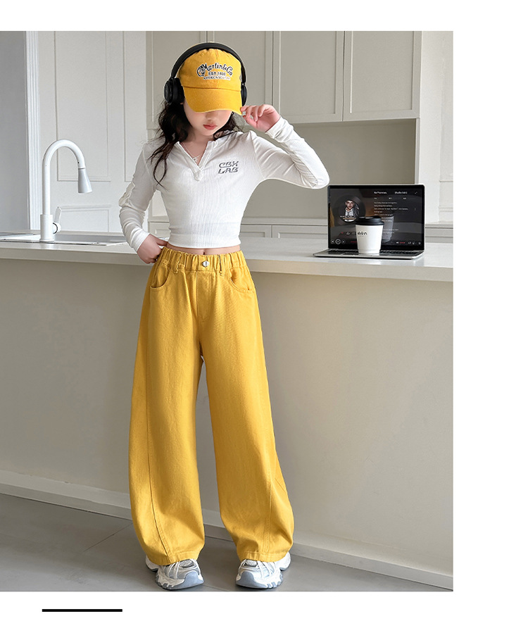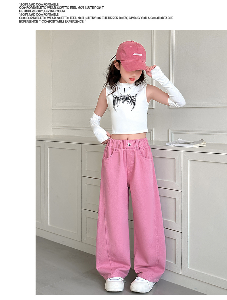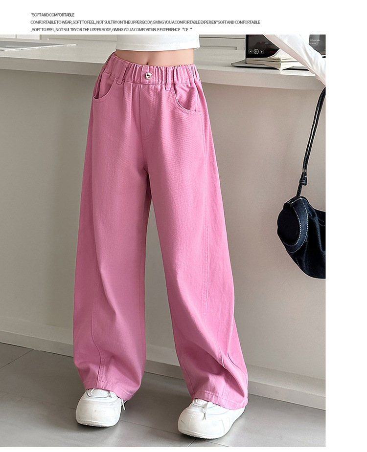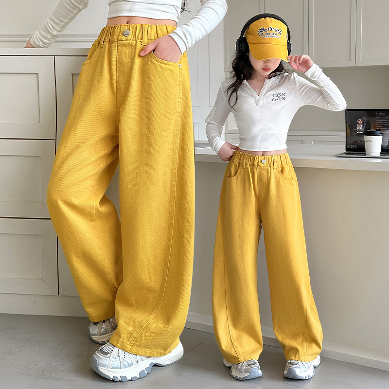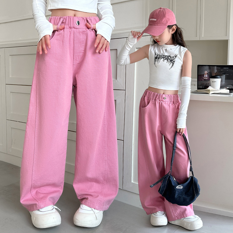 소녀 청바지 2025 봄 새로운 도착 세련된 올 매치 스트레이트 바지 어린이 유행 느슨한 넓은 다리 바지