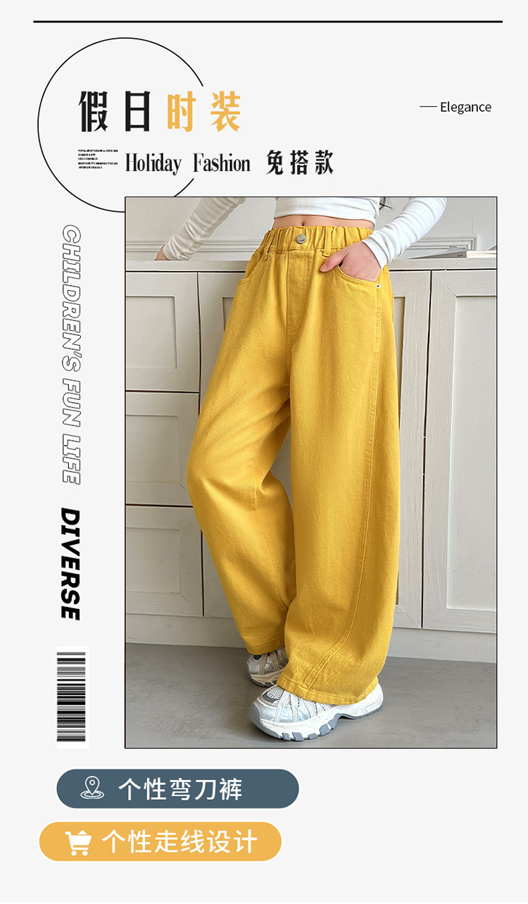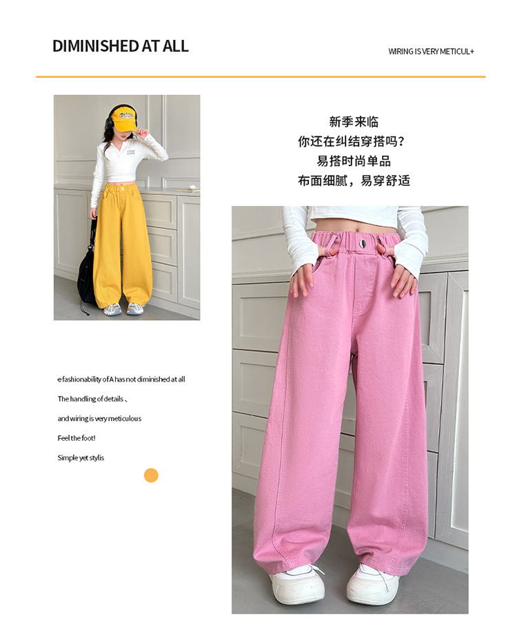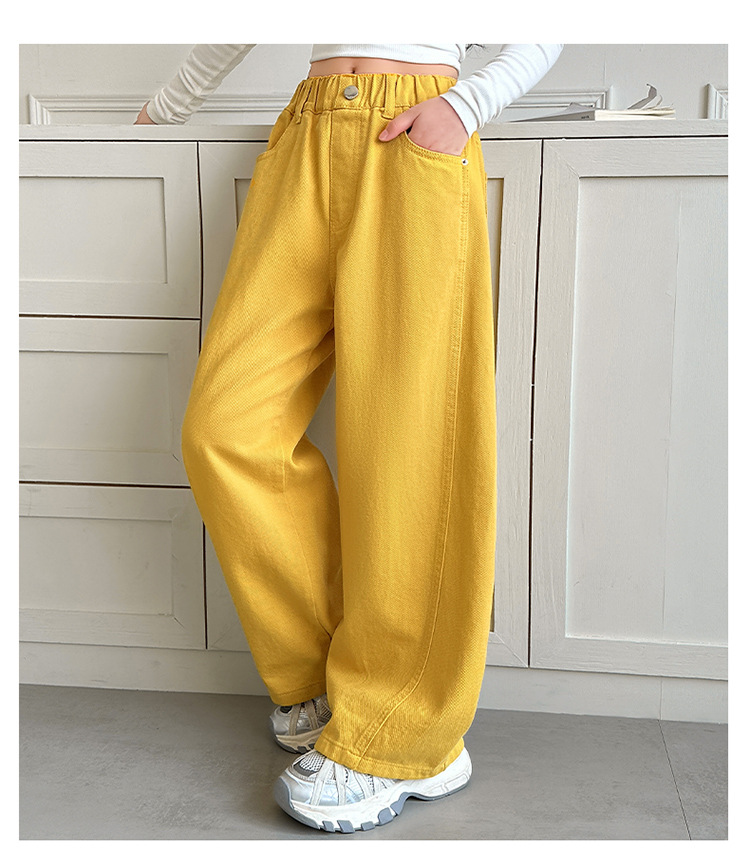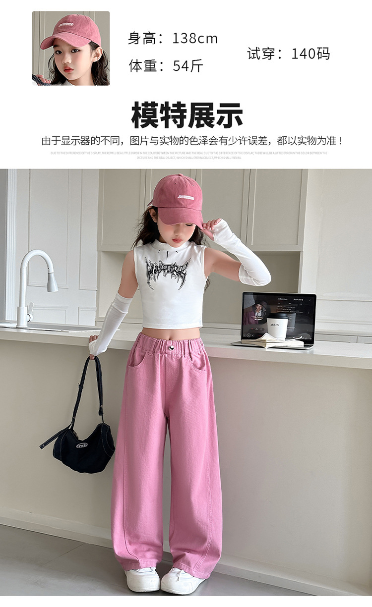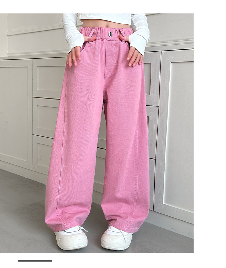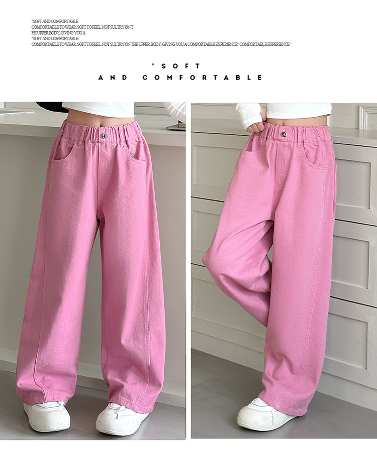 소녀 청바지 2025 봄 새로운 도착 세련된 올 매치 스트레이트 바지 어린이 유행 느슨한 넓은 다리 바지
