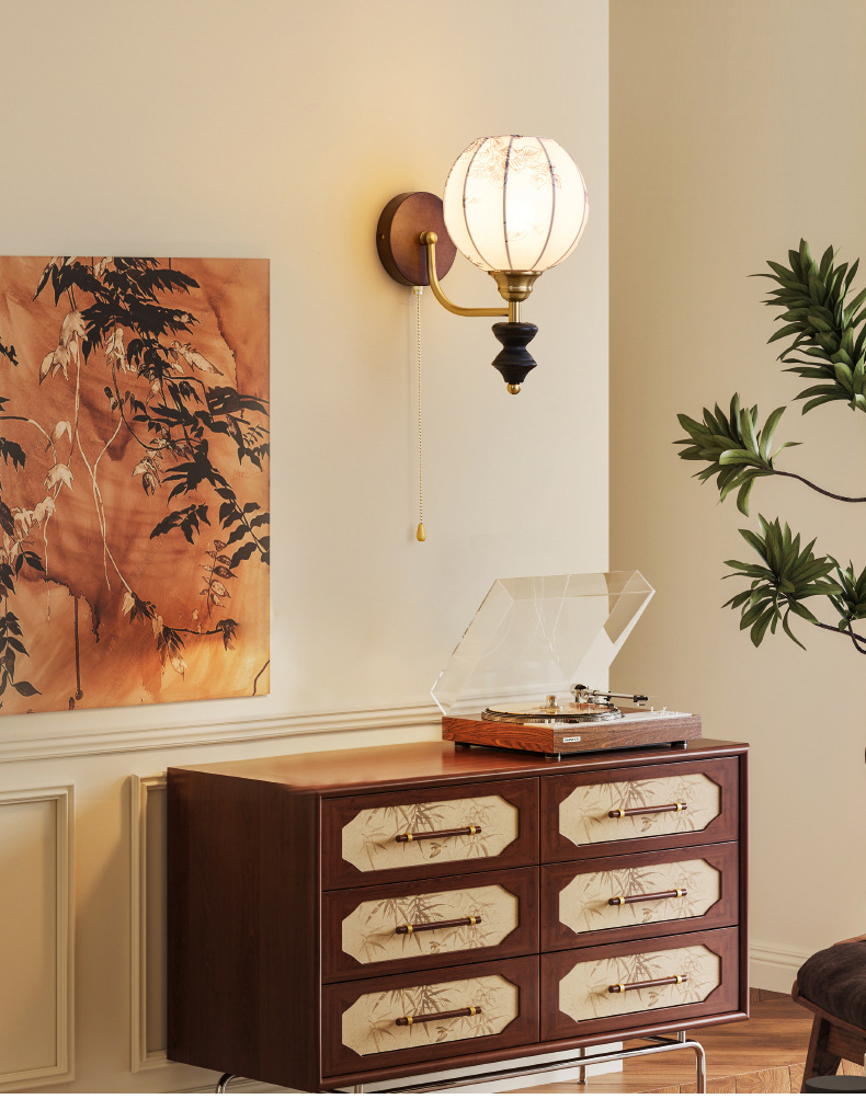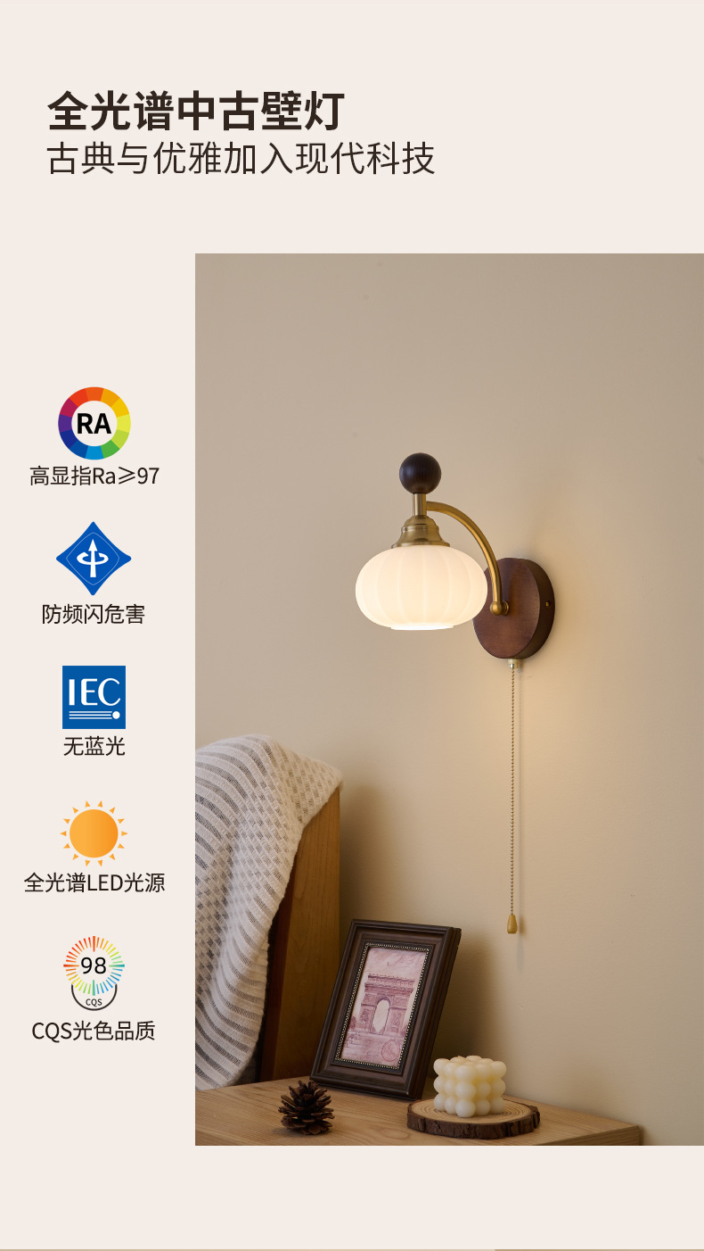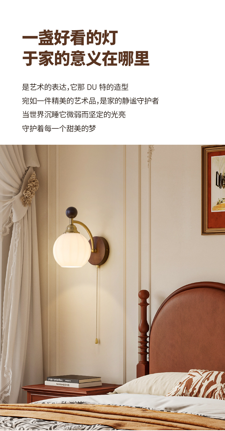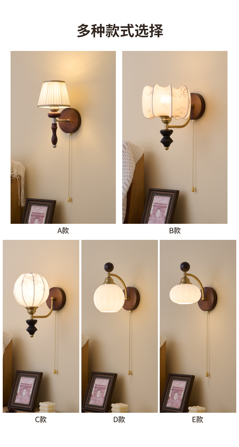 프랑스 중세 벽 램프 미국 복고풍 단단한 나무 고급 침실 침대 옆 램프 케이블 스위치 거실 배경 벽 램프스토어 가기