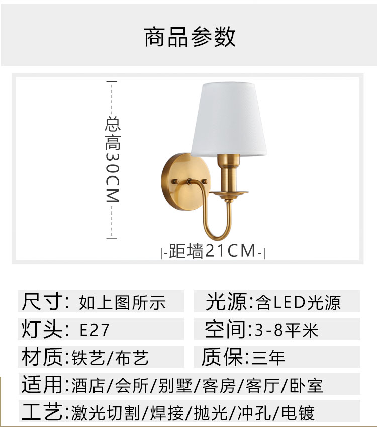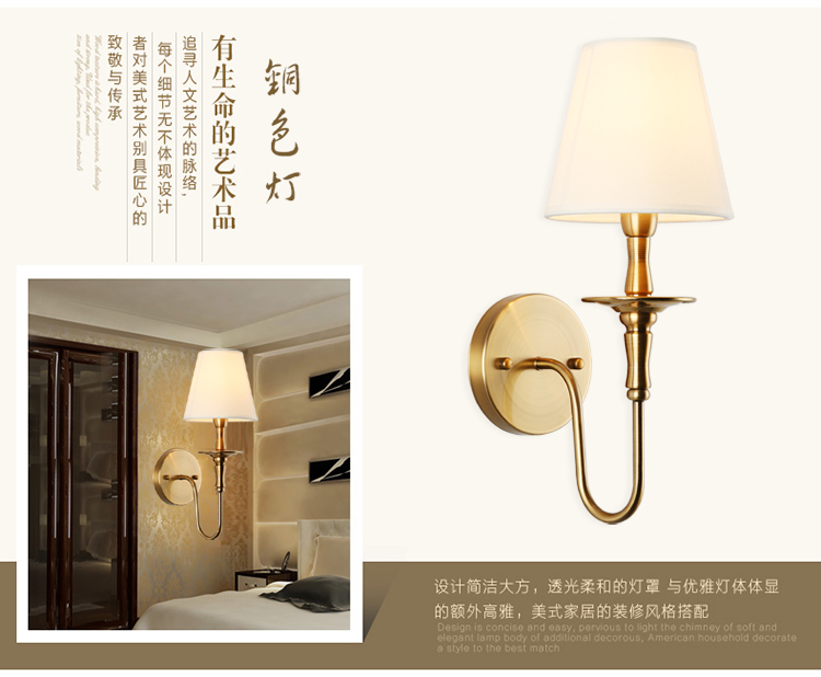 벽 램프 침대 옆 거실 침실 배경 벽 통로 계단 새로운 중국 및 유럽 구리 골동품 싱글 및 더블 헤드 램프
