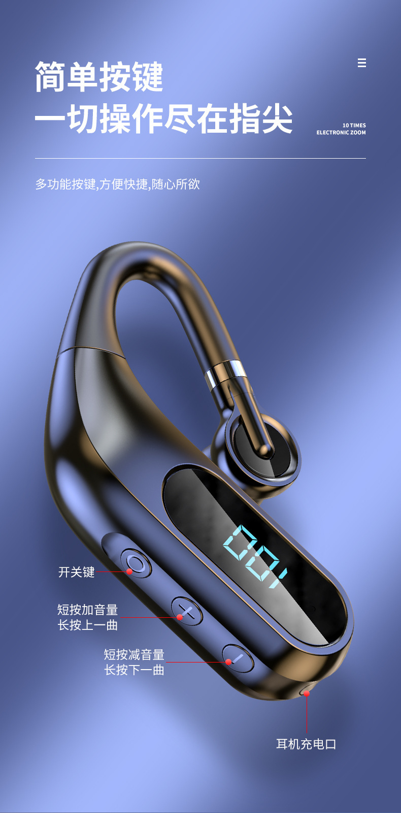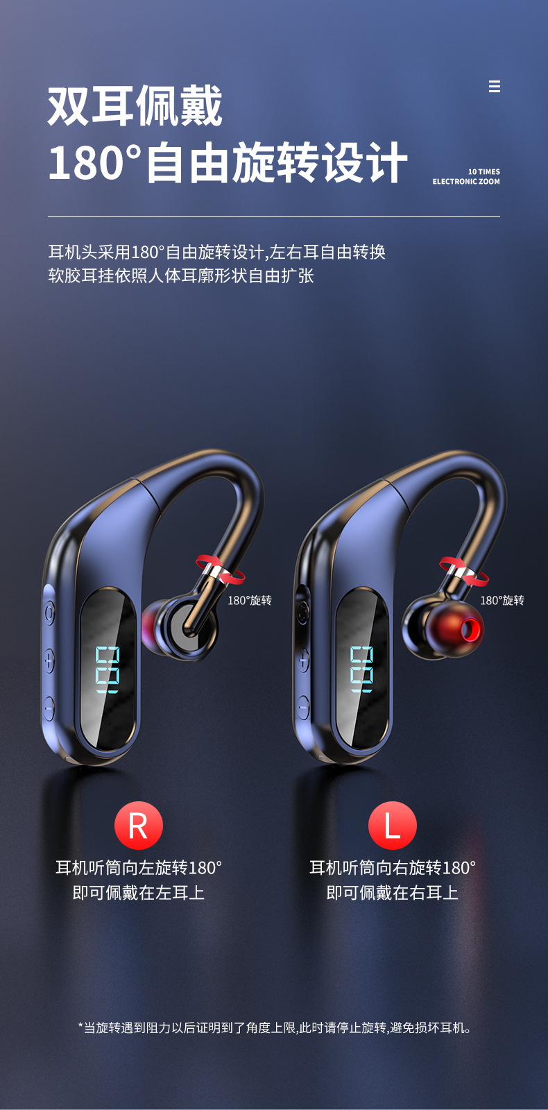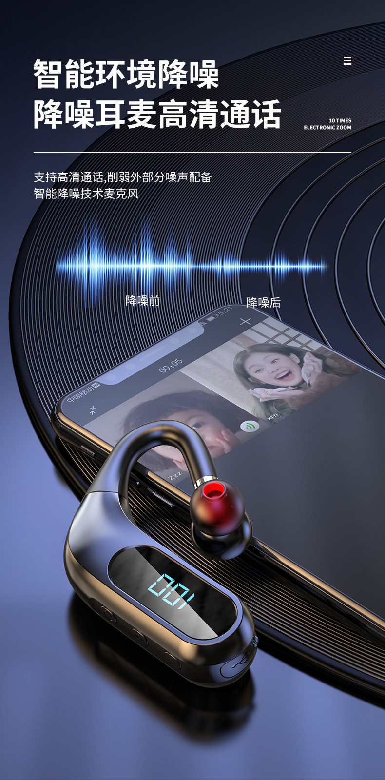 블루투스 헤드셋 디지털 디스플레이 귀 매달려 소음 감소 스포츠 무선 인이어 내구성 Huaqiangbei 디지털 통화 긴 내구성