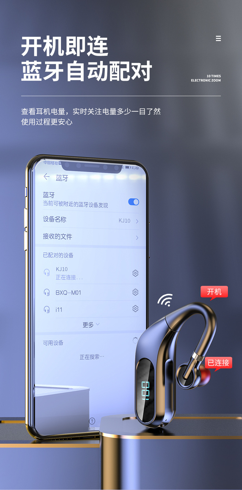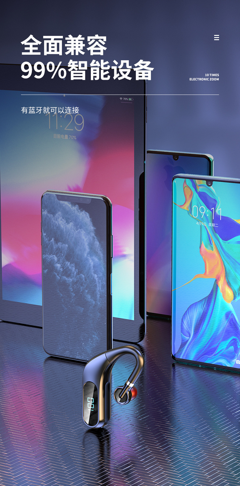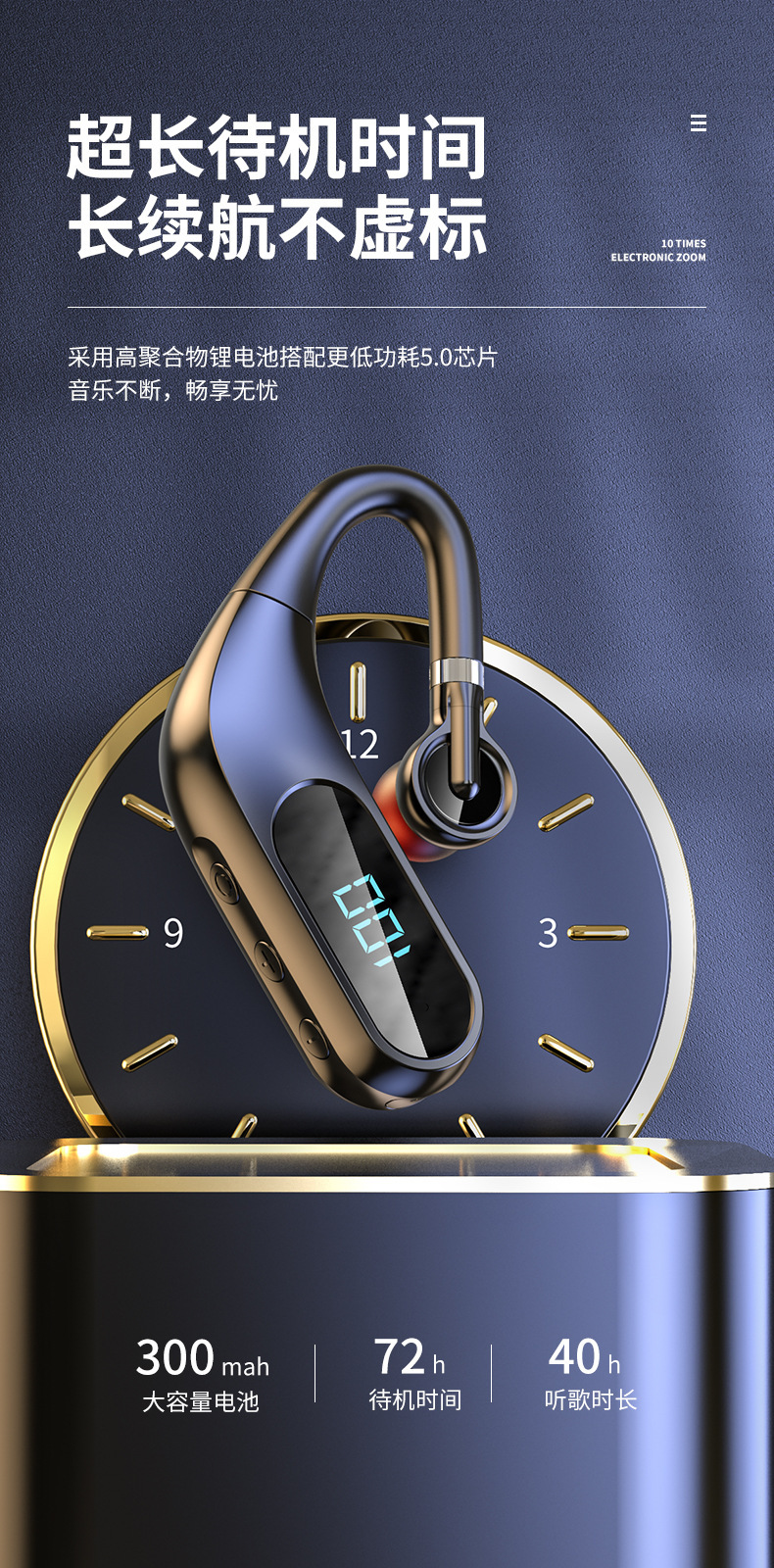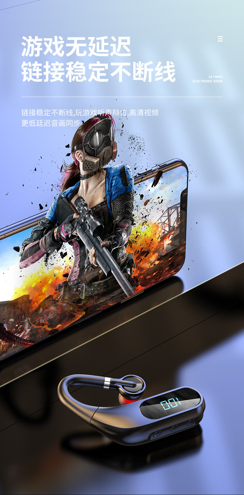 블루투스 헤드셋 디지털 디스플레이 귀 매달려 소음 감소 스포츠 무선 인이어 내구성 Huaqiangbei 디지털 통화 긴 내구성