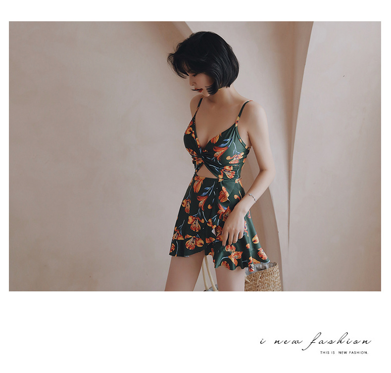 빈티지 그린 커플 수영복 2020 새로운 원피스 보수적 배꼽 덮인 슬리밍 휴가 해변 여성을위한 온천 수영복스토어 가기