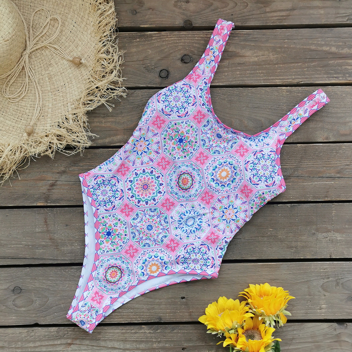 2025 새로운 원피스 수영복 여성 유럽과 미국의 복고풍 인쇄 대외 무역 민소매 AliExpress 아마존스토어 가기