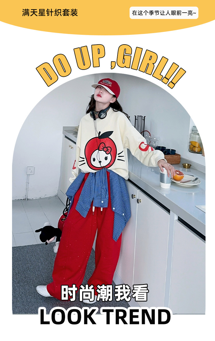소녀 2025 봄 새로운 서양식 어린이 니트 세트 봄 원피스 소녀 인터넷 연예인 거리 스웨터 2 피스 세트스토어 가기