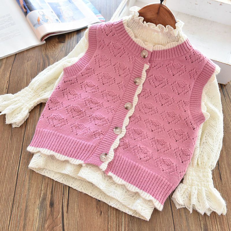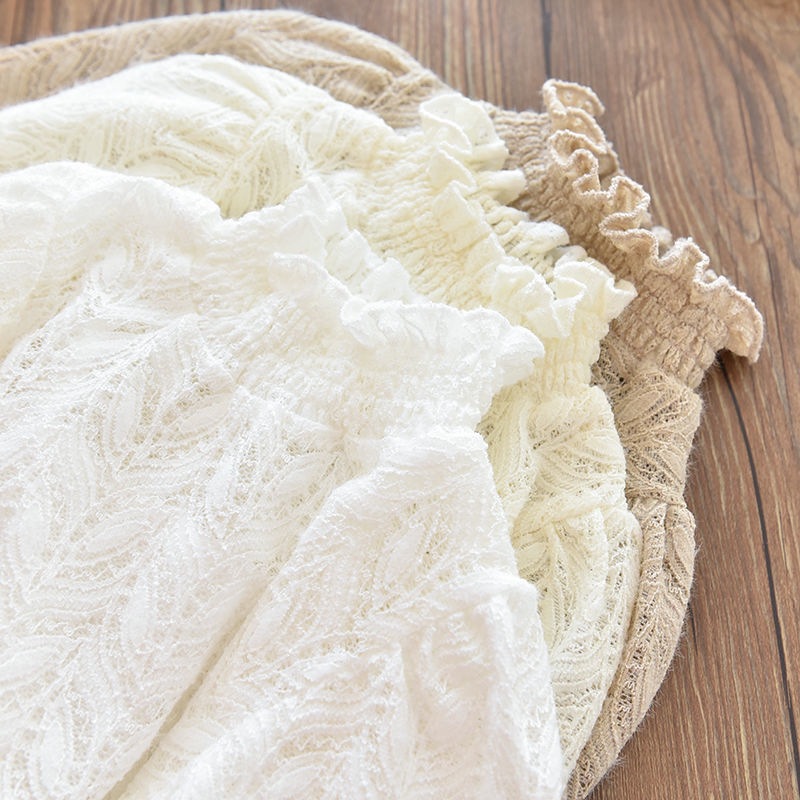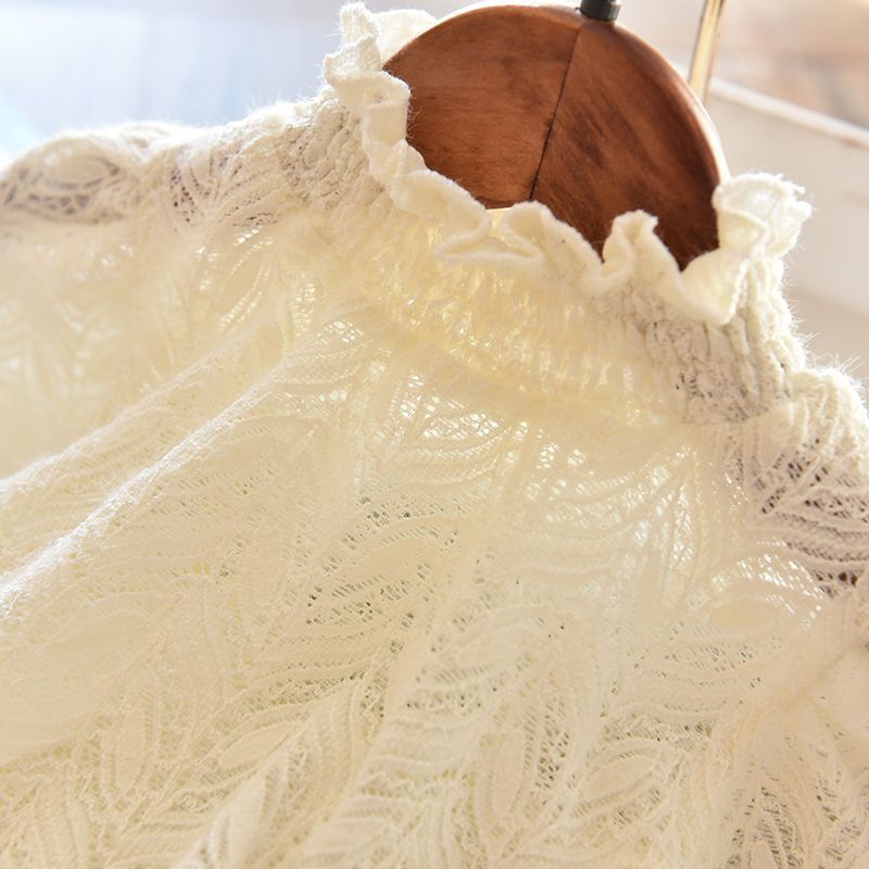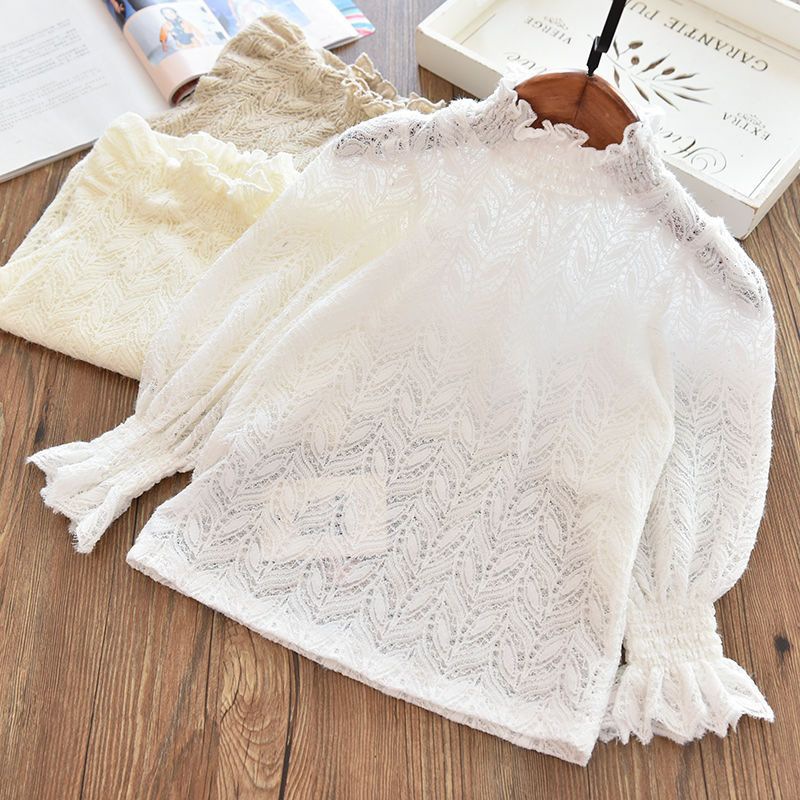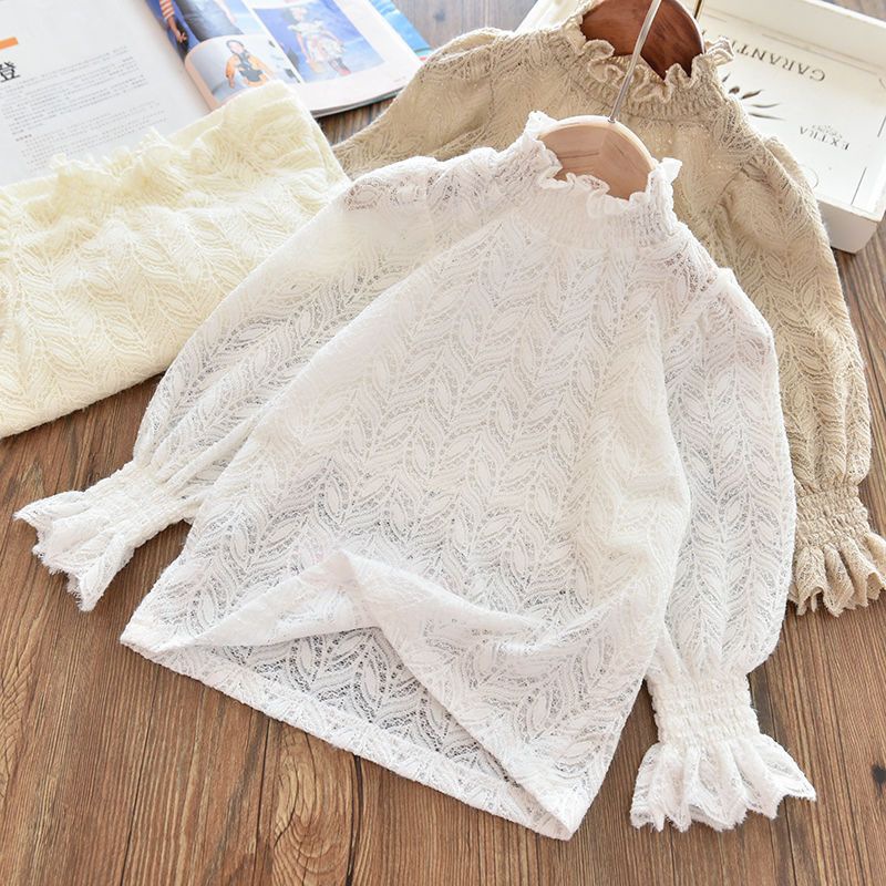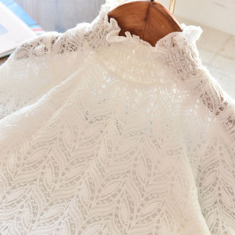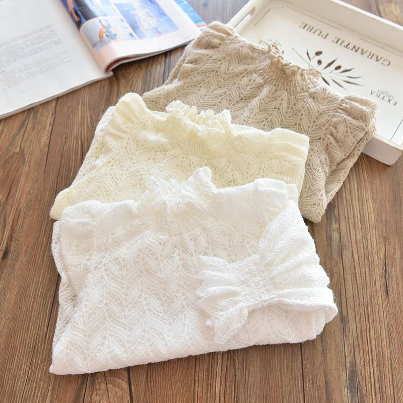 봄과 가을 소녀 티셔츠 아기 세련된 어린이 맞춤형 트렌디 브랜드 한국 스타일 스위트 레이스 하이 칼라 자카드 베이스 셔츠