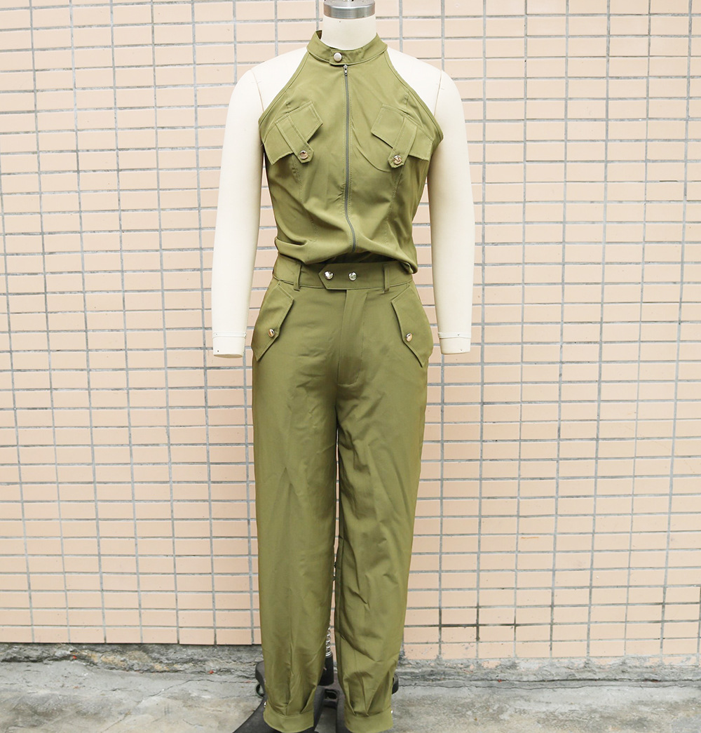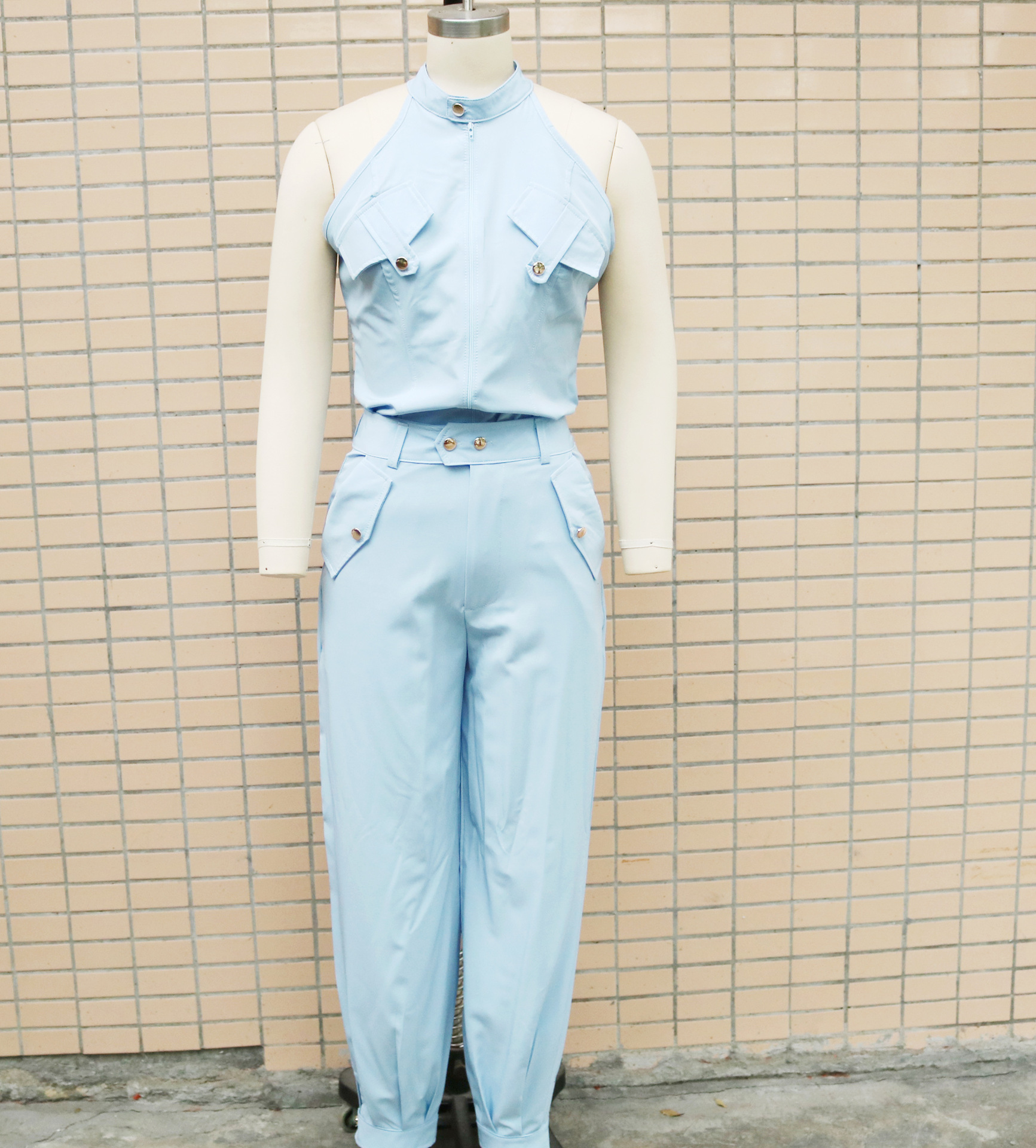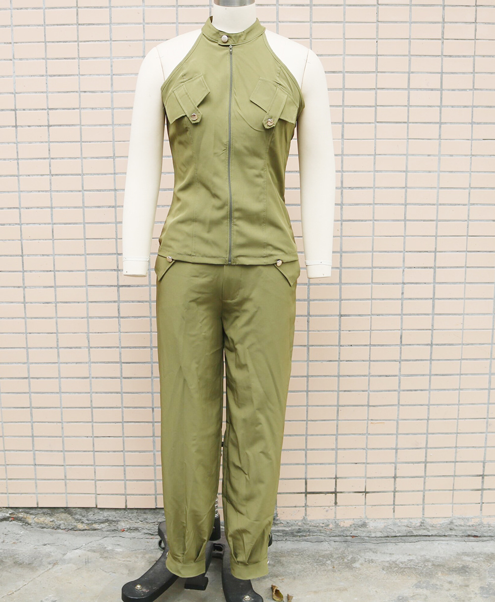아마존 유럽과 미국 국경 새로운 여성 여름 섹시한 목 탑 캐주얼 바지 투피스 세트 여성스토어 가기