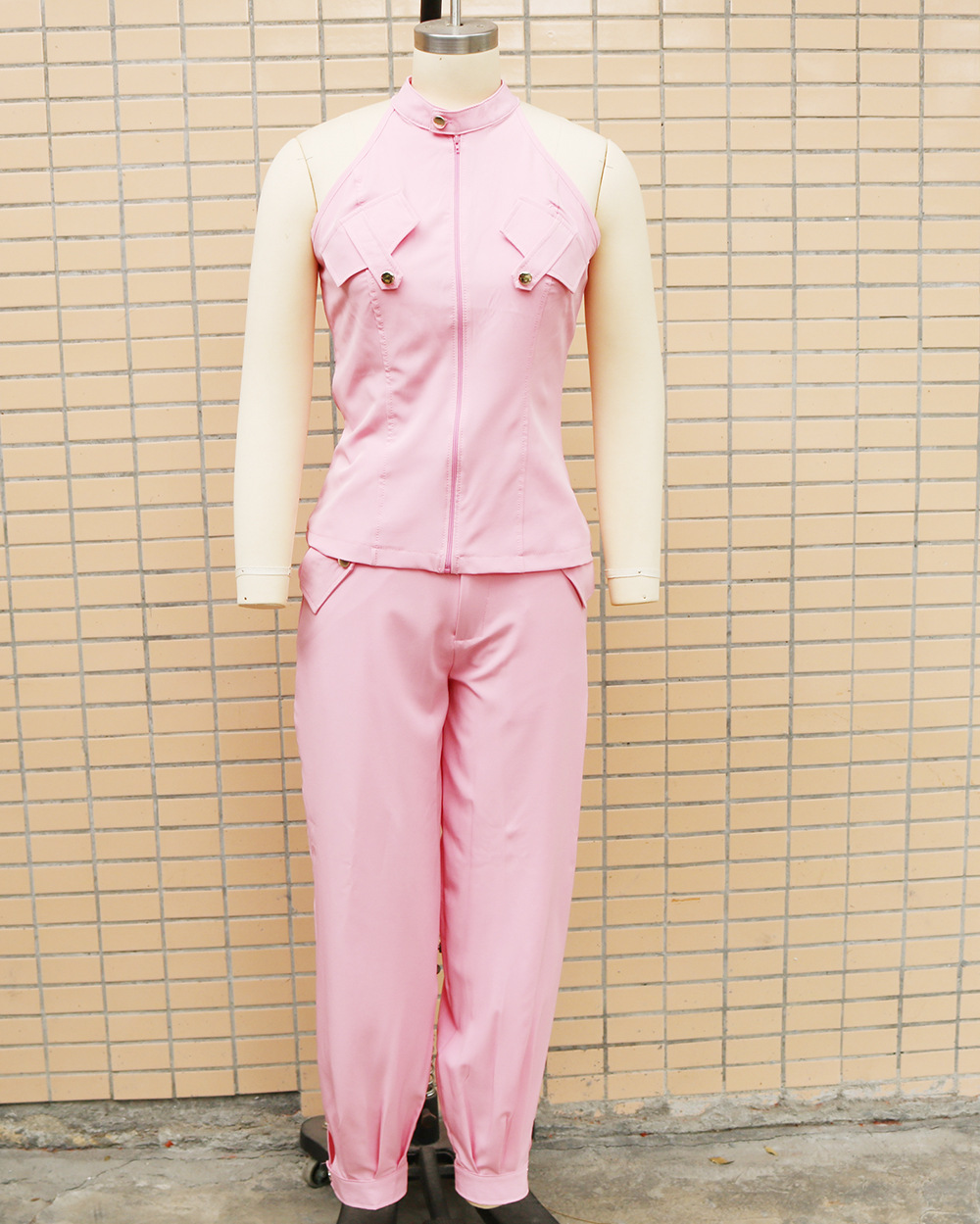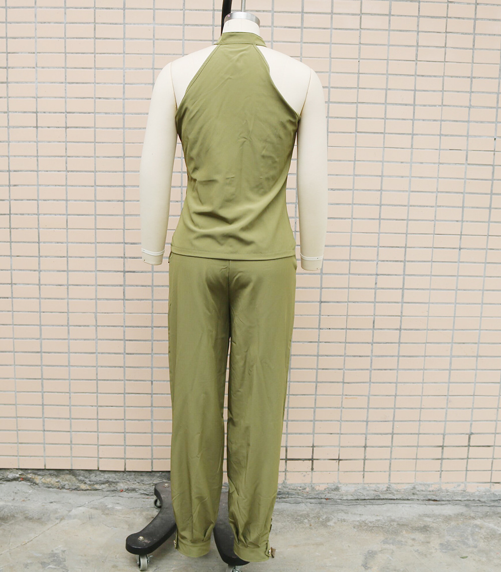 아마존 유럽과 미국 국경 새로운 여성 여름 섹시한 목 탑 캐주얼 바지 투피스 세트 여성