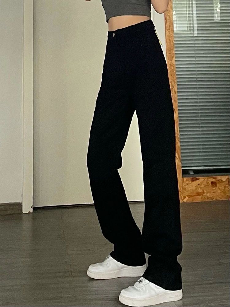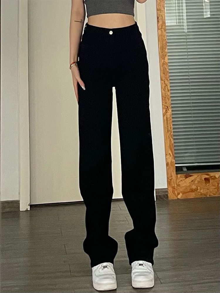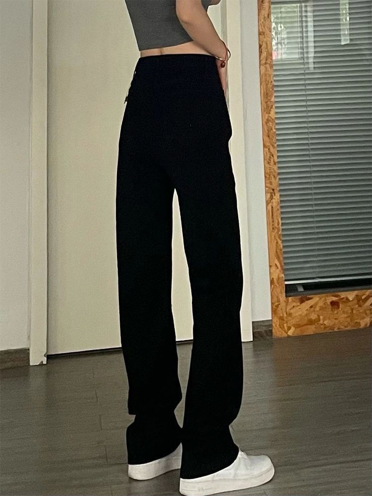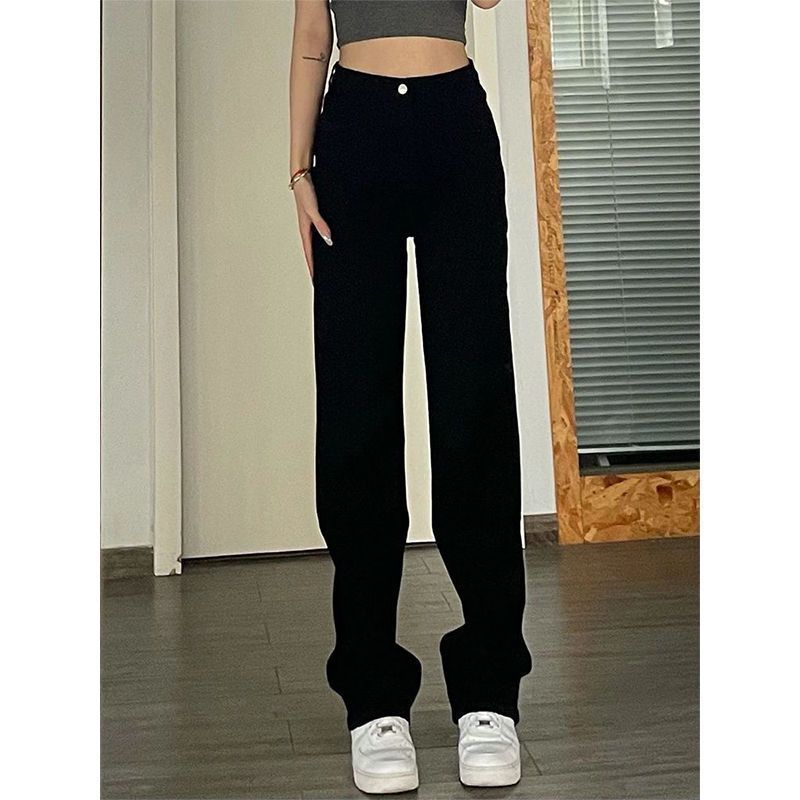 검은 좁은 청바지 여성의 여름 새로운 높은 허리 느슨한 넓은 다리 바지 슬림 보이는 키가 큰 스트레이트 바지 Ins 트렌디스토어 가기