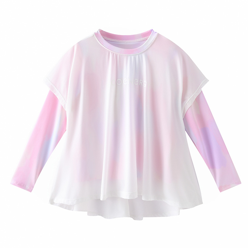 여아용 투피스 스타일 요정옷 티셔츠 봄 여름 야외 자외선 차단 속건 아동 스포츠 긴팔 티셔츠 자외선 차단 속건
