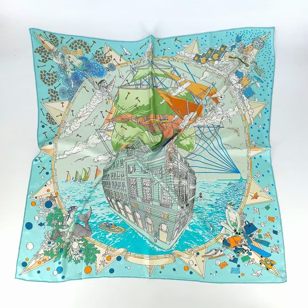 유럽 스타일 캐리지 Fubao 실크 90 대형 스퀘어 스카프 실크 14 mm 핸드 롤 하이 엔드 목도리 실크 스카프 그림 선물스토어 가기