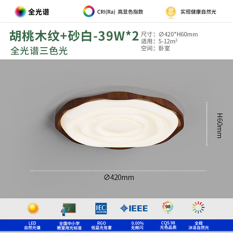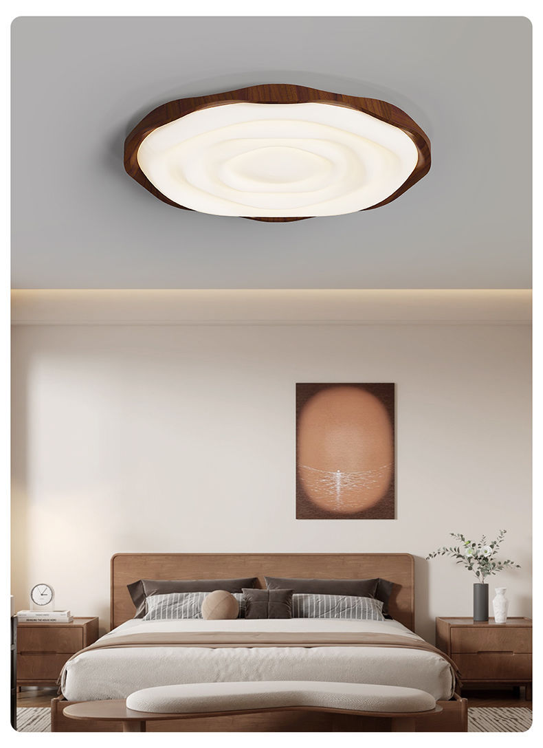 침실 골동품 빈티지 마스터 침실 크림 바람 호두 나무 곡물 새로운 연구 LED 천장 빛 중산 램프스토어 가기