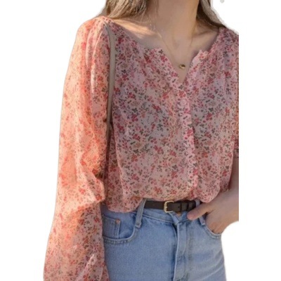 시폰 선 스크린 셔츠 여성의 2025 년 새로운 초가을 달콤한 얇은 셔츠 여성의 부드러운 스타일 꽃 탑스토어 가기