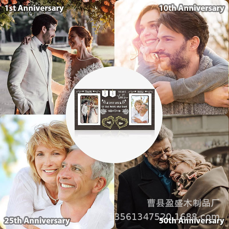 국경 간 커플 사진 프레임 장식품 나무 결혼식 기념 데스크탑 침실 기념품 간단한 권선 사진 프레임 테이블스토어 가기