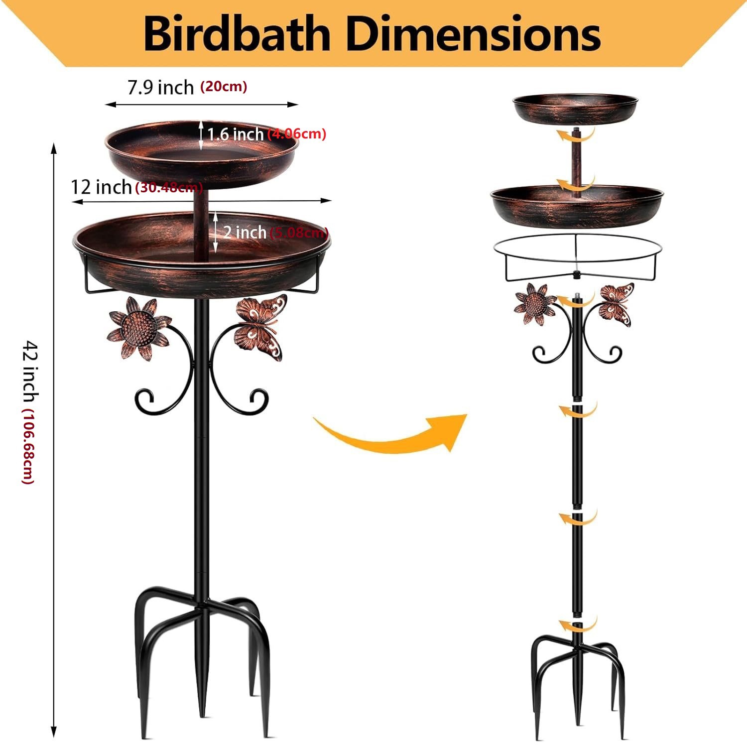 미국 스타일 빈티지 철 장식 새 먹이 물 목욕 분지 정원 장식 수직 정원 새 목욕 먹이 그릇