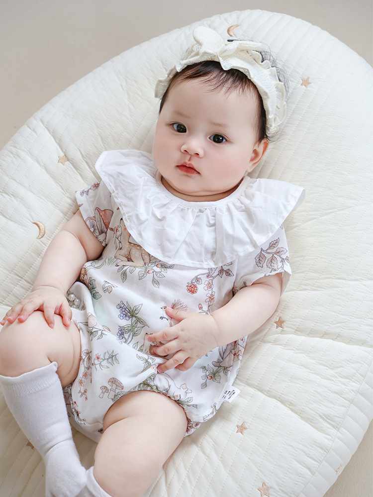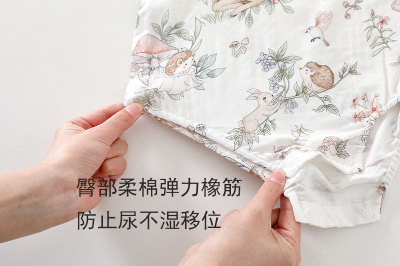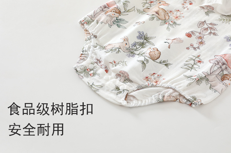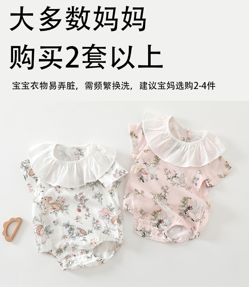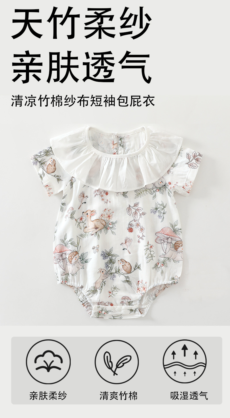 2025 새로운 아기 가방 여름 대나무면 거즈 삼각형 반팔 아기 소녀 크롤링 옷 통기성과 얇은스토어 가기