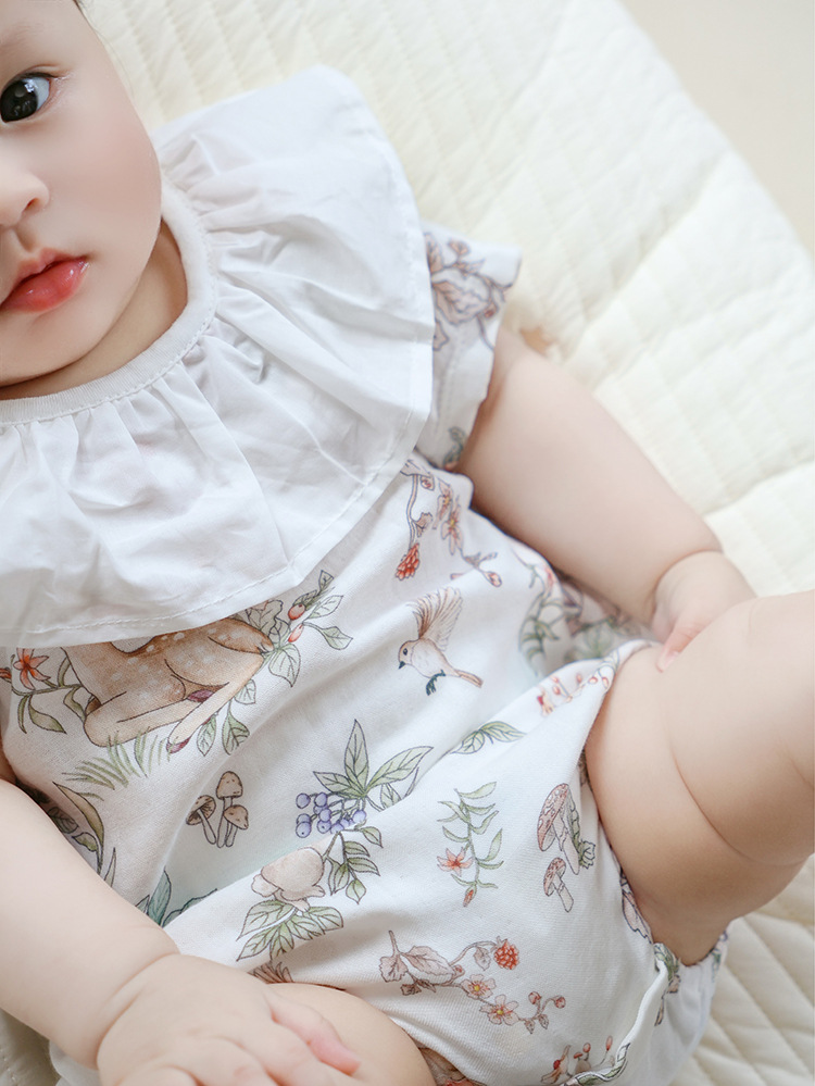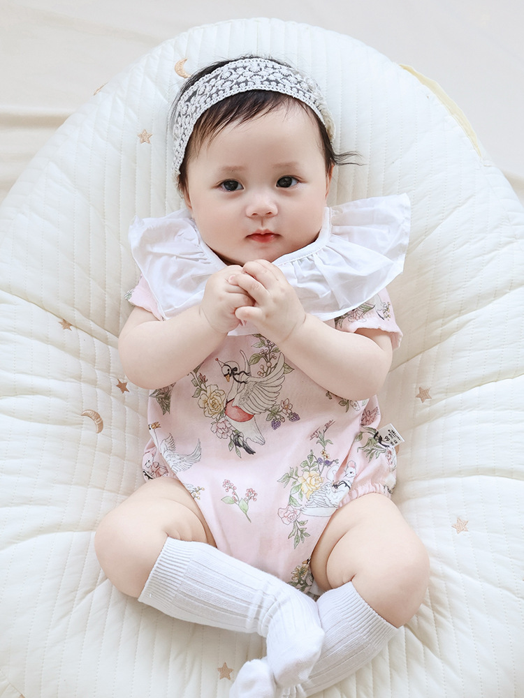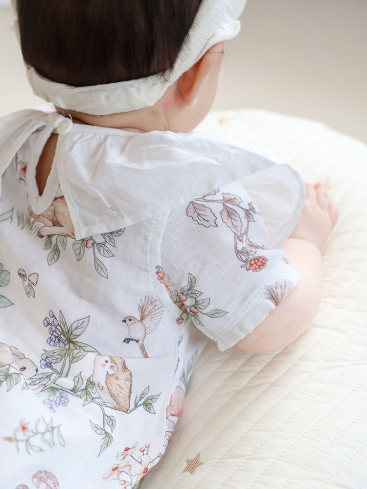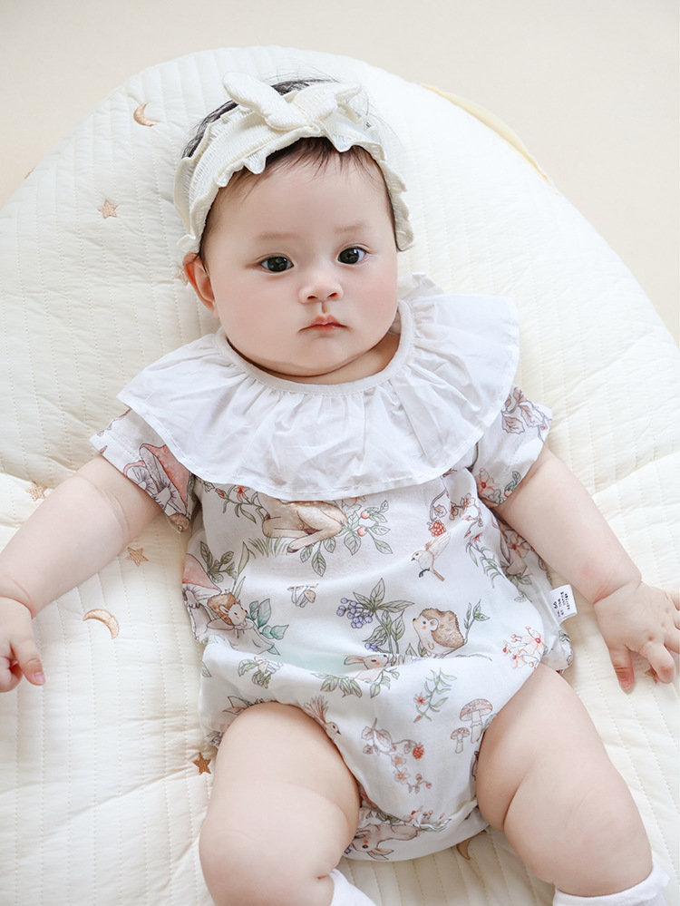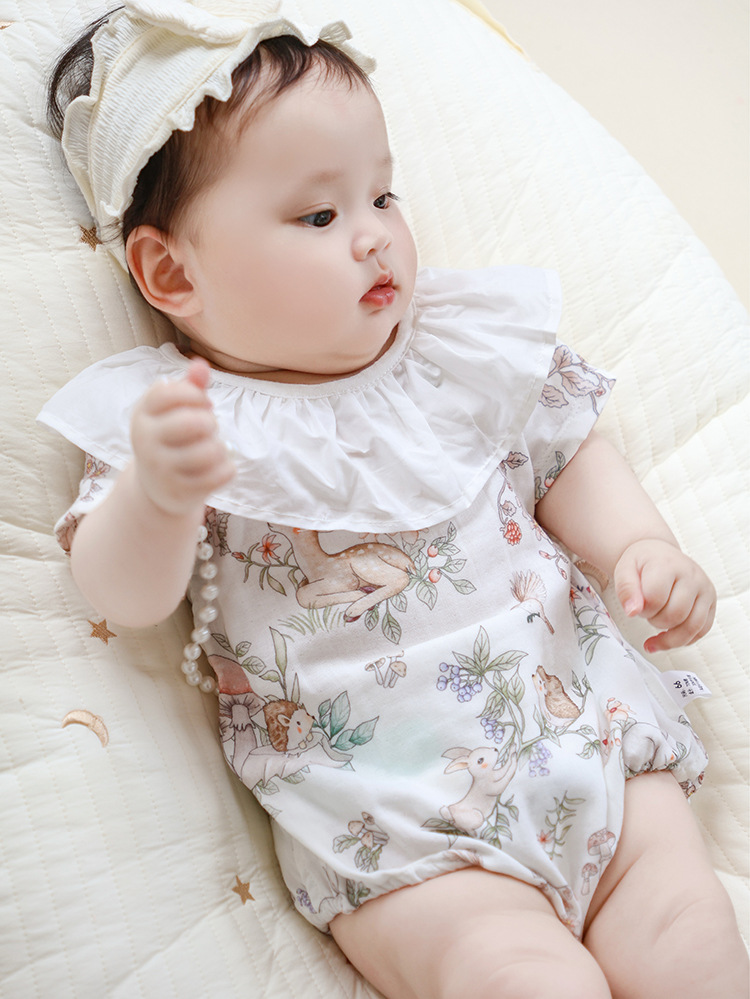 2025 새로운 아기 가방 여름 대나무면 거즈 삼각형 반팔 아기 소녀 크롤링 옷 통기성과 얇은스토어 가기