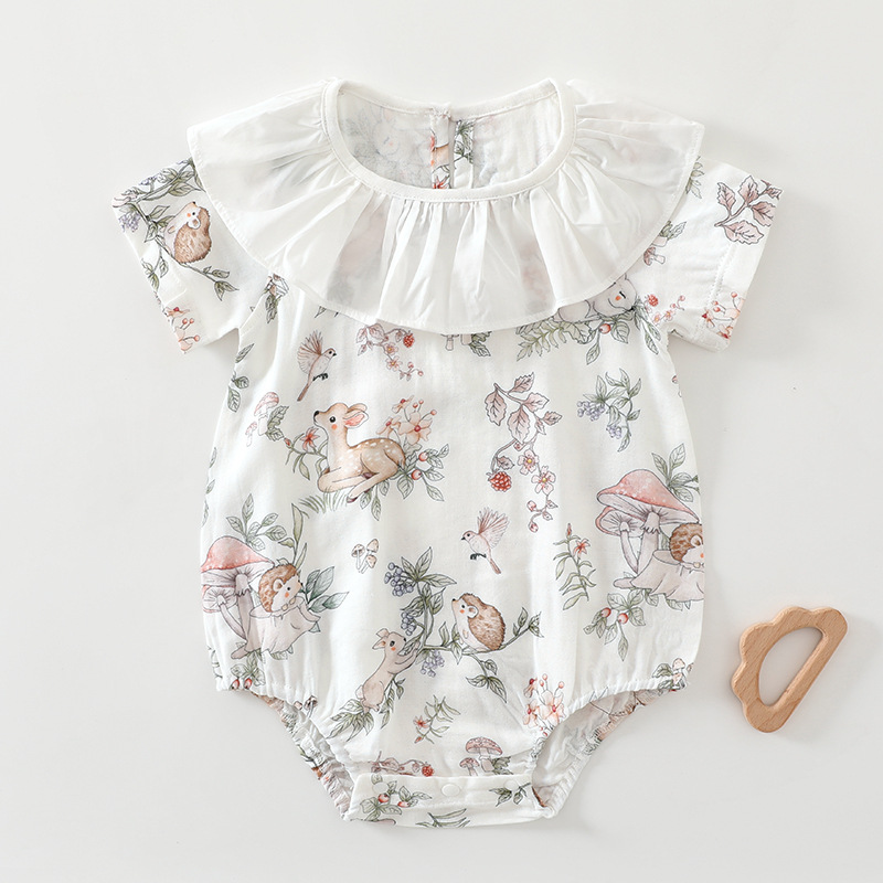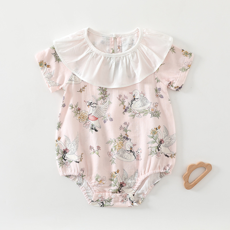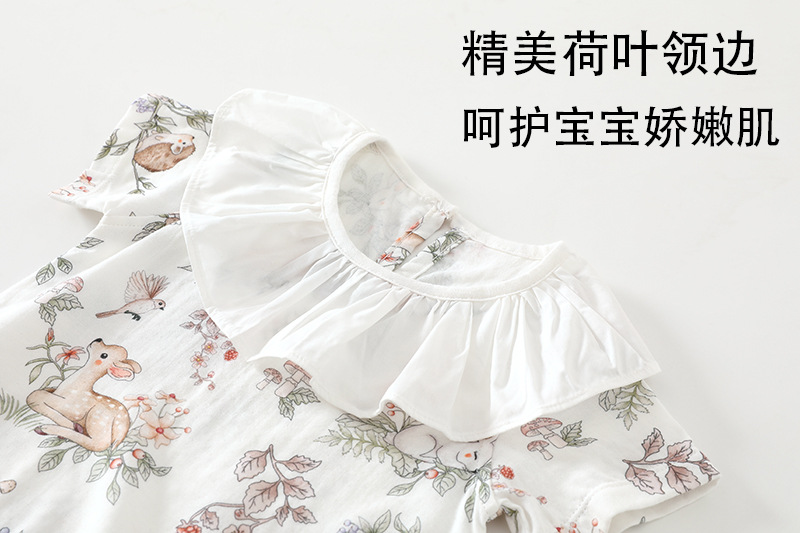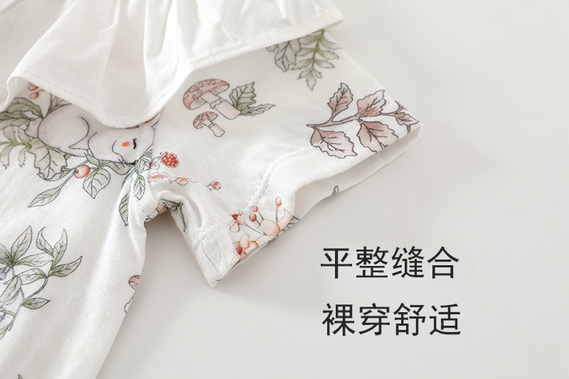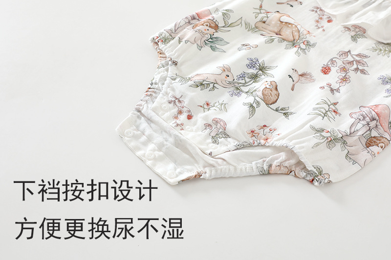 2025 새로운 아기 가방 여름 대나무면 거즈 삼각형 반팔 아기 소녀 크롤링 옷 통기성과 얇은