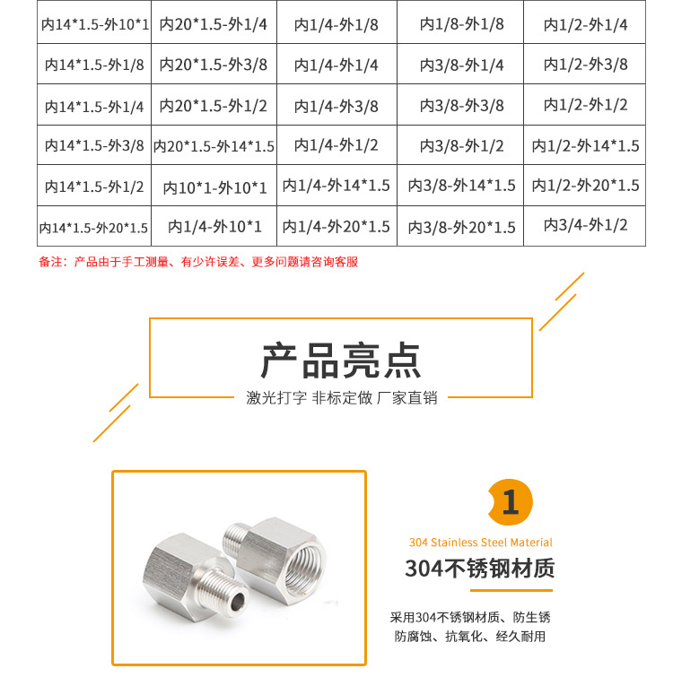 M & Keding 비표준 스테인레스 스틸 압력 게이지 어댑터 내부 및 외부 와이어 특수 모양의 코어 보충 M20/14 미터 인치 두께스토어 가기