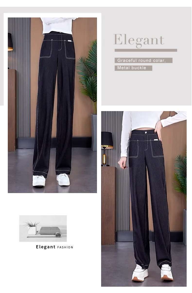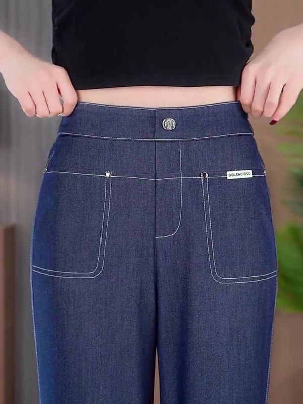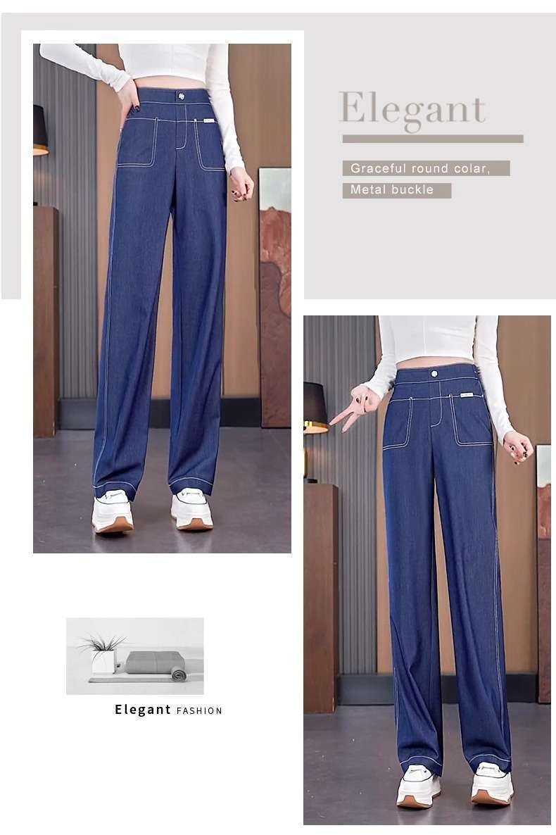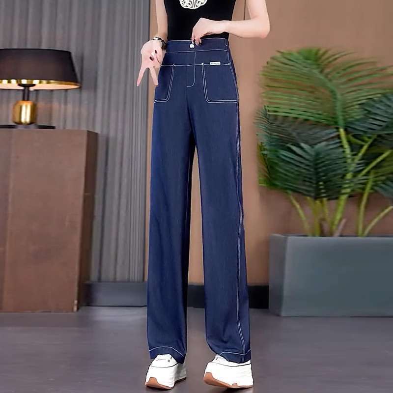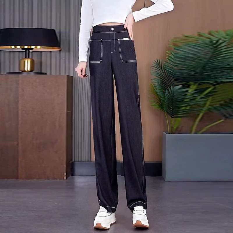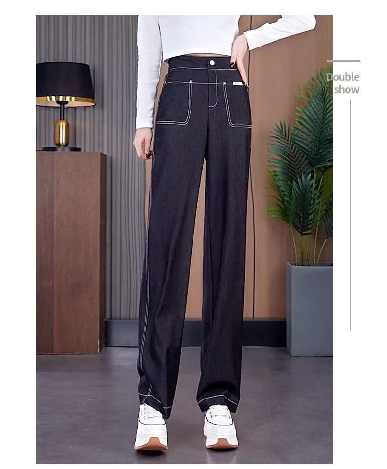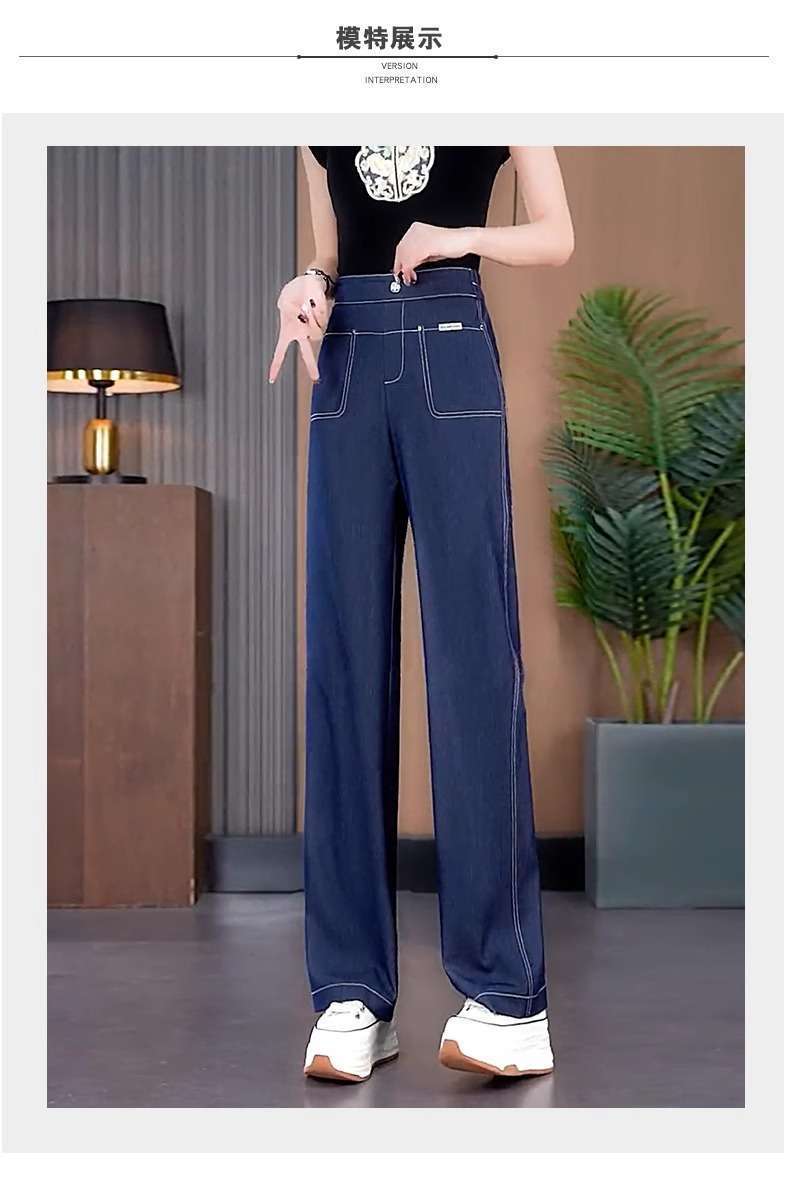 Lyocell Tencel 청바지 여성 여름 얇은 느슨한 슬리밍 좁은 넓은 다리 바지 작은 바지스토어 가기