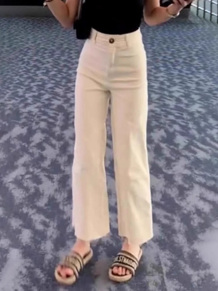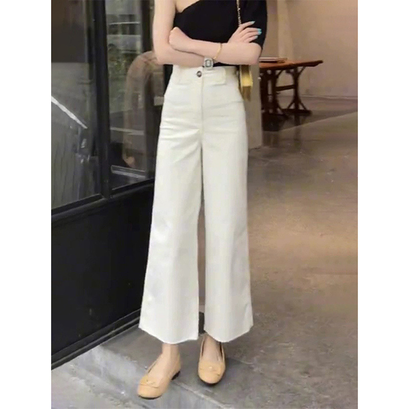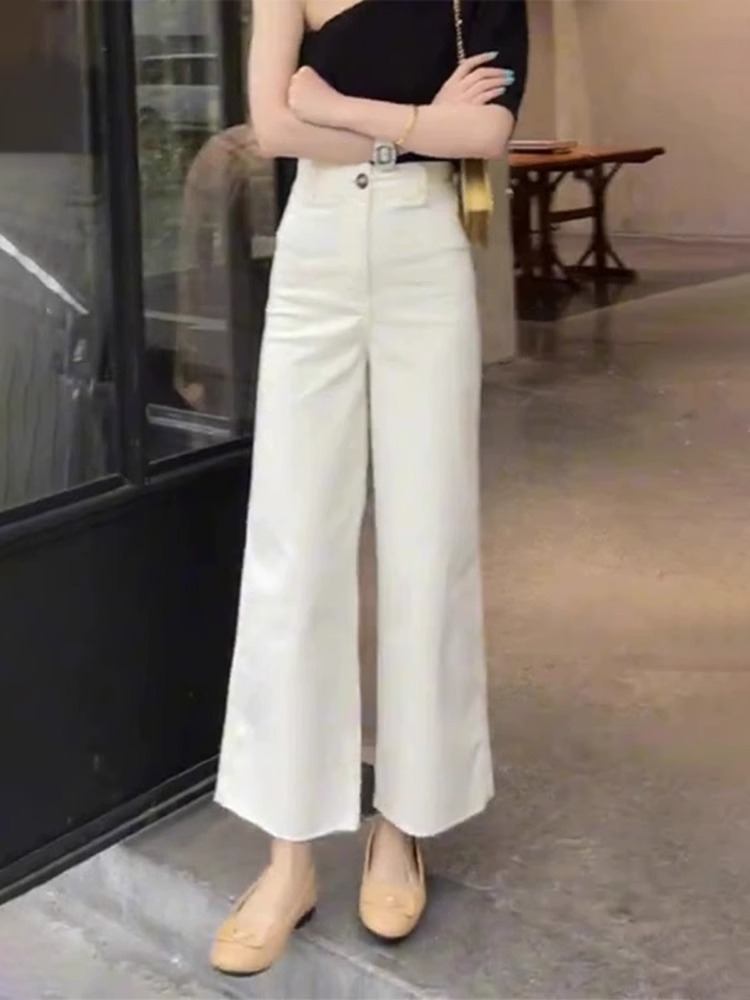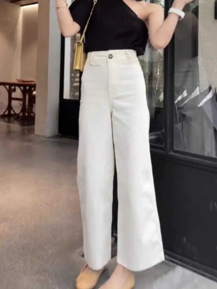화이트 크롭 스트레이트 청바지 여자 봄과 여름 2025 새로운 높은 허리 느슨한 슬리밍 올 매치 와이드 레그 팬츠
