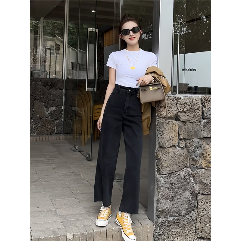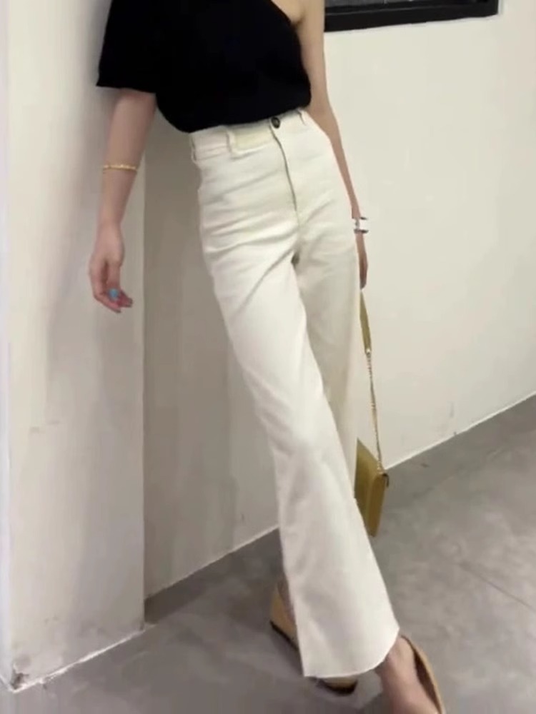화이트 크롭 스트레이트 청바지 여자 봄과 여름 2025 새로운 높은 허리 느슨한 슬리밍 올 매치 와이드 레그 팬츠스토어 가기