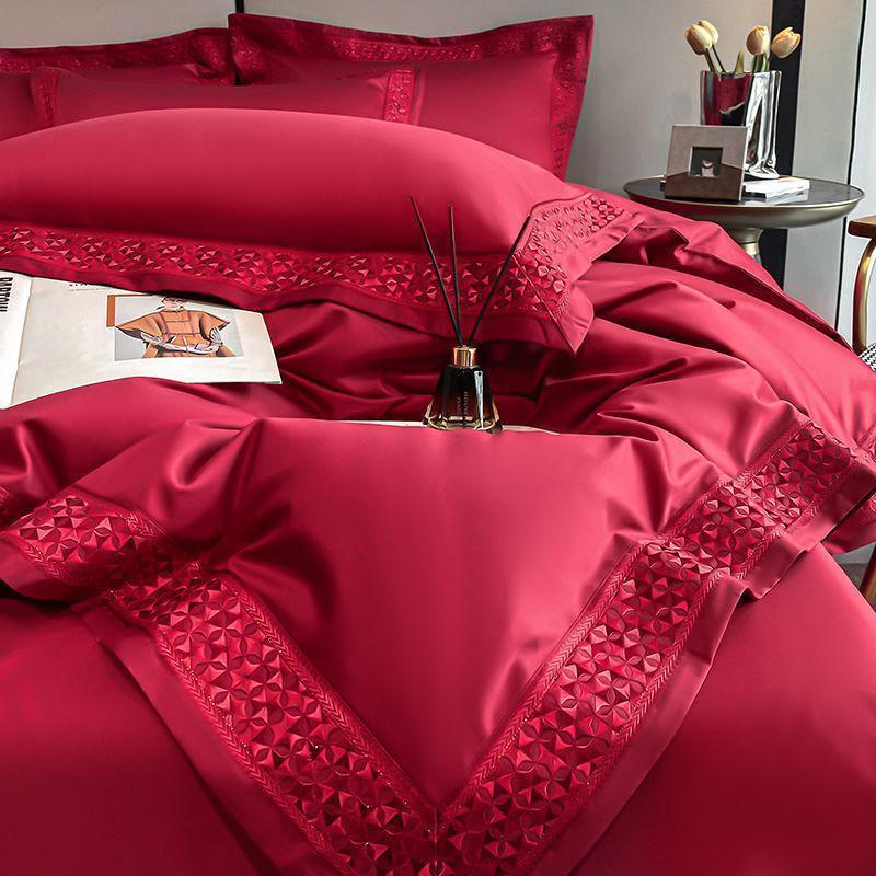 고급 감각 200 말면 4 피스 세트 100 면 침대 시트 퀼트 커버 가벼운 고급 긴 스테이플 코튼 헤어 세대
