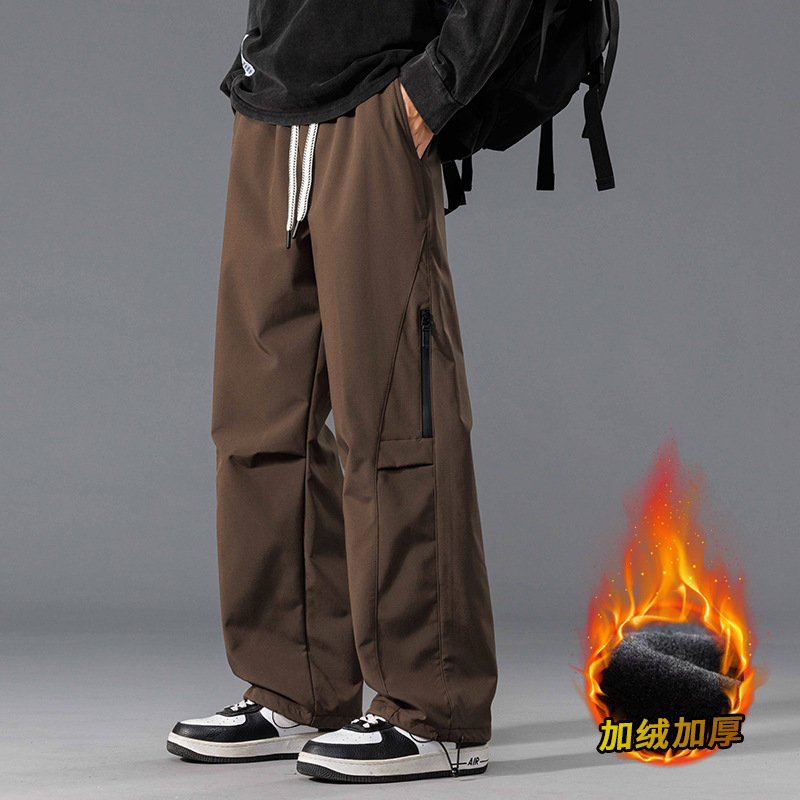 2025 남성용 방수 바지 가을 겨울 미국 스타일 기모 스트레이트 레그 워크웨어 캐주얼 다용도 등산 바지스토어 가기
