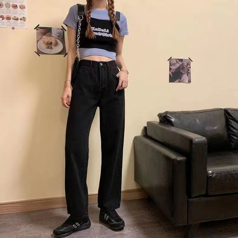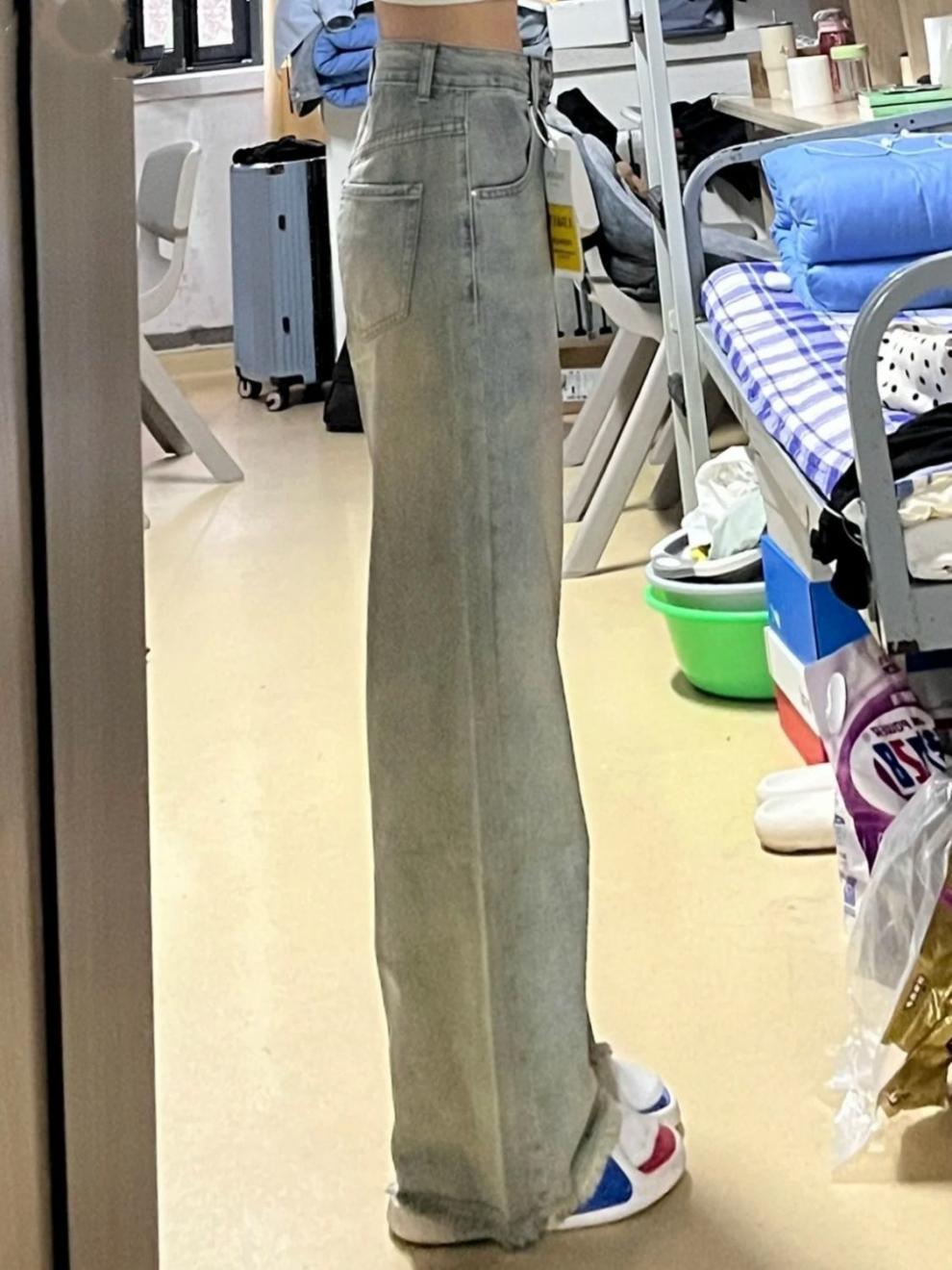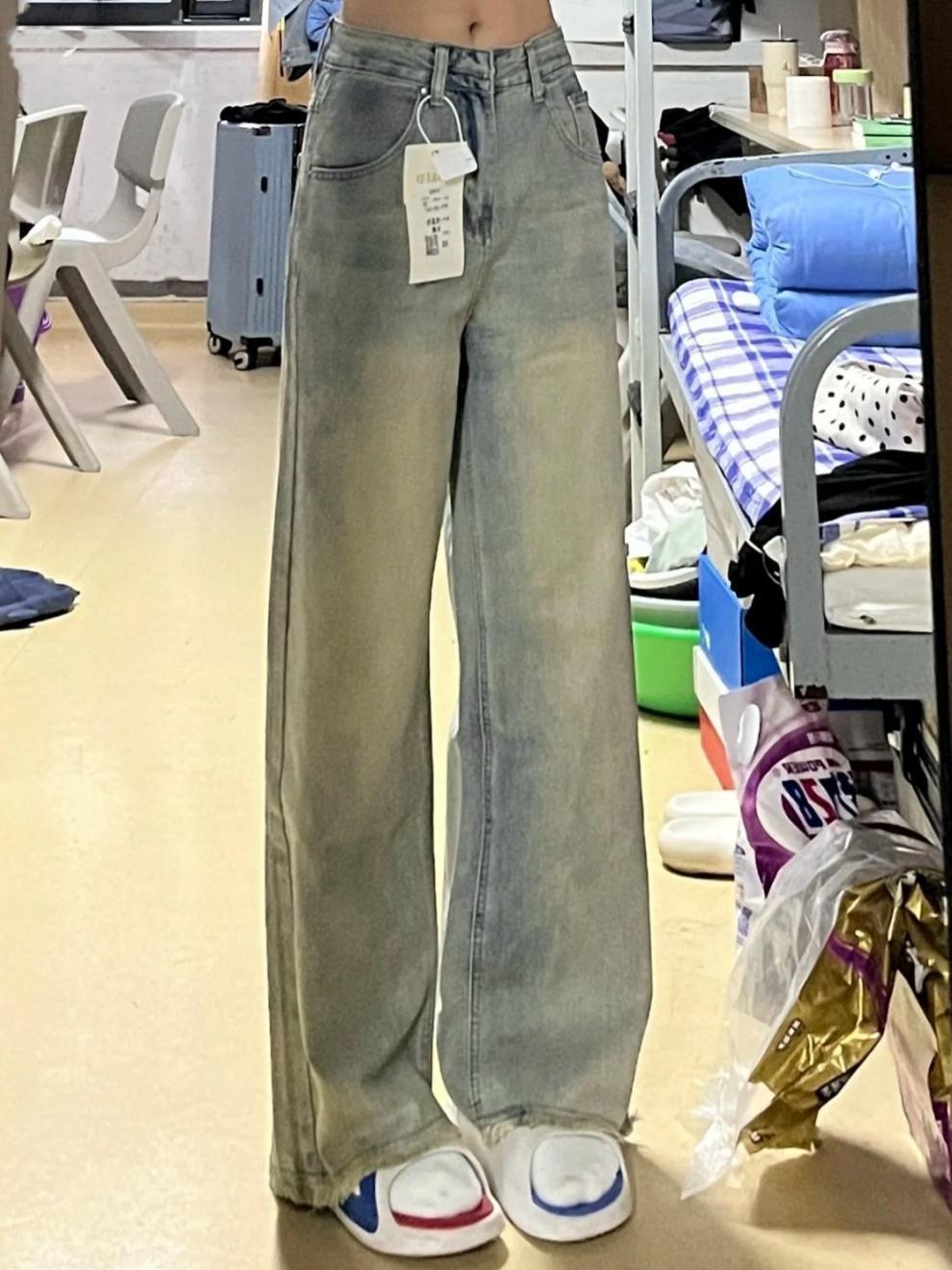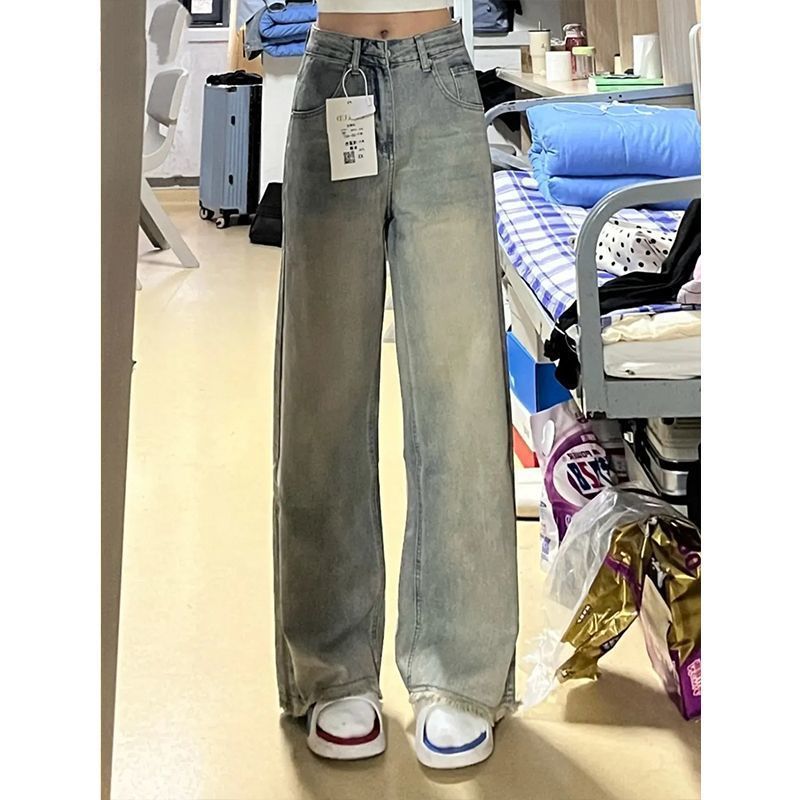 빈티지 세탁 오래 된 넓은 다리 청바지 여성 여름 새로운 높은 허리 느슨한 슬리밍 스트레이트 튜브 바지스토어 가기