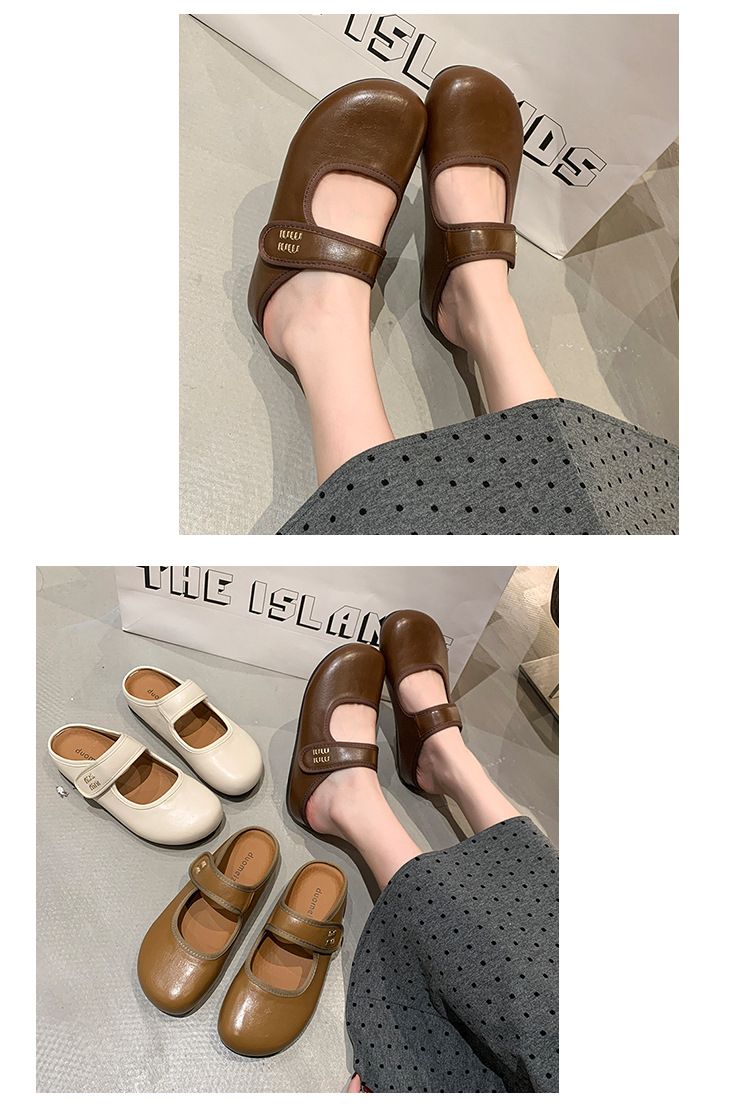 프랑스 스타일 Mary Jane Baotou 하프 슬리퍼 여성 아우터 착용 2025 새로운 스타일 내부 높이 증가 플랫 벨크로 비르 케논 드래그