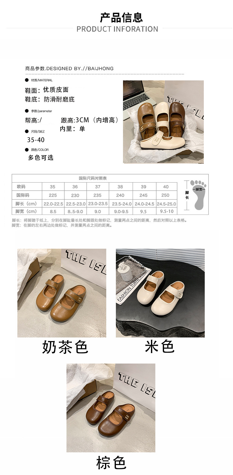 프랑스 스타일 Mary Jane Baotou 하프 슬리퍼 여성 아우터 착용 2025 새로운 스타일 내부 높이 증가 플랫 벨크로 비르 케논 드래그스토어 가기
