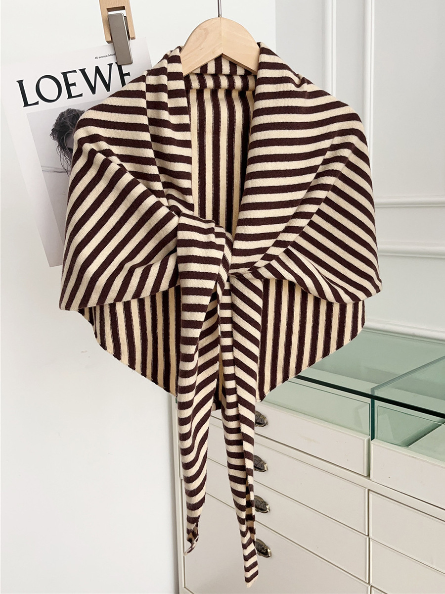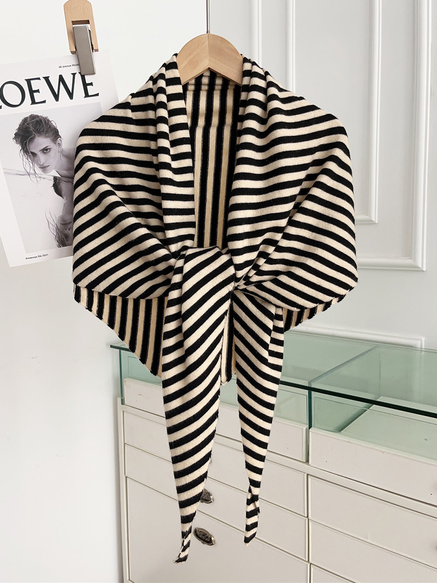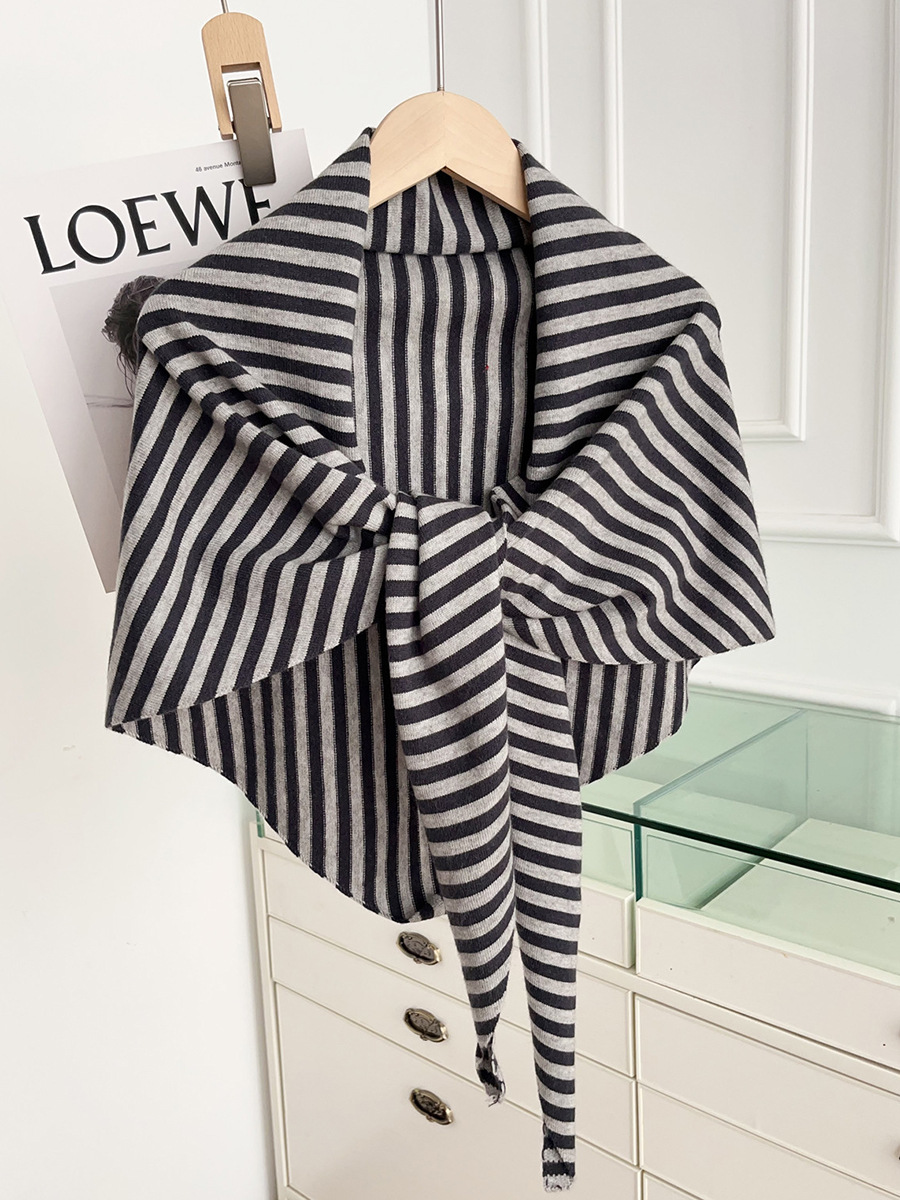 2025 봄과 가을 새로운 스타일 스카프 양모 혼합 삼각형 큰 목도리 여성의 줄무늬 두꺼운 외부 니트 따뜻한 어깨