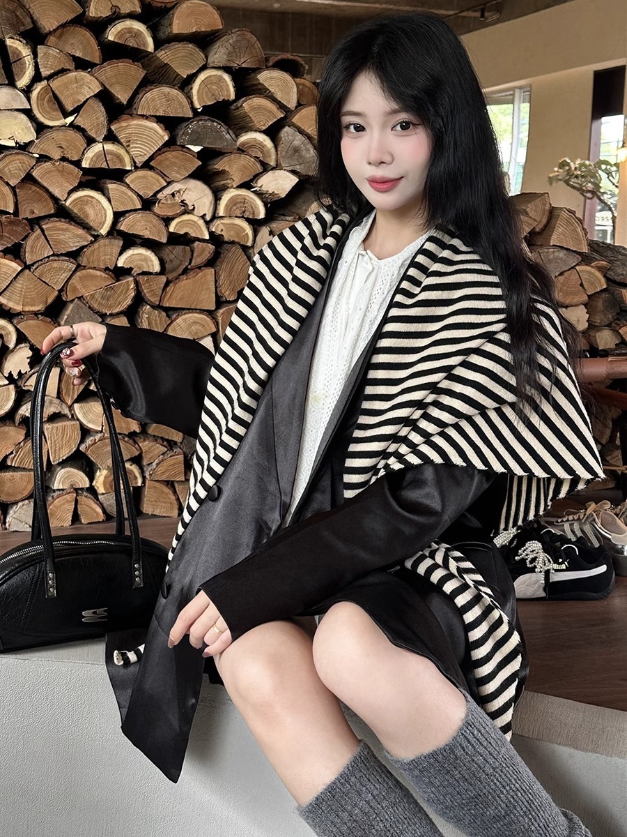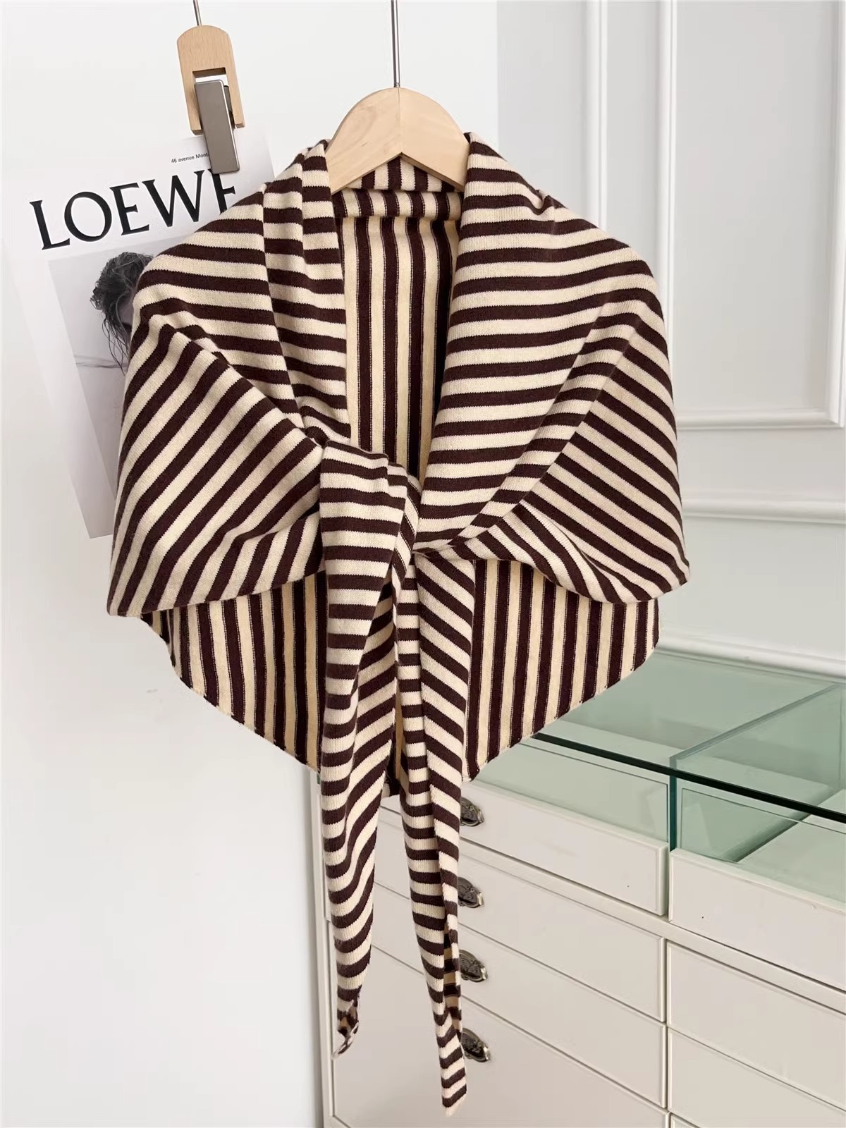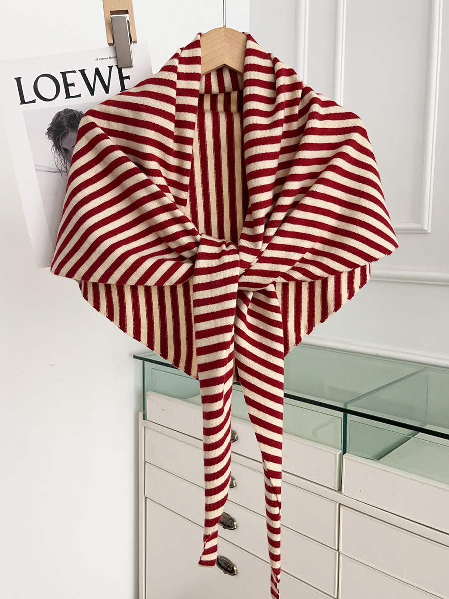 2025 봄과 가을 새로운 스타일 스카프 양모 혼합 삼각형 큰 목도리 여성의 줄무늬 두꺼운 외부 니트 따뜻한 어깨