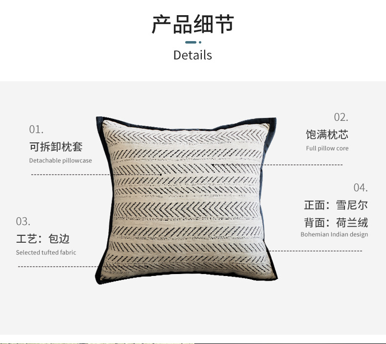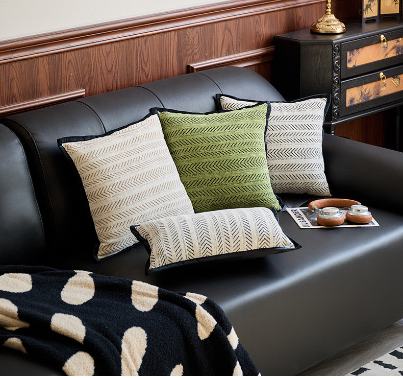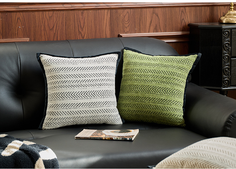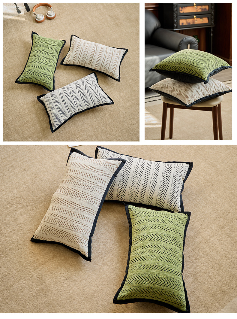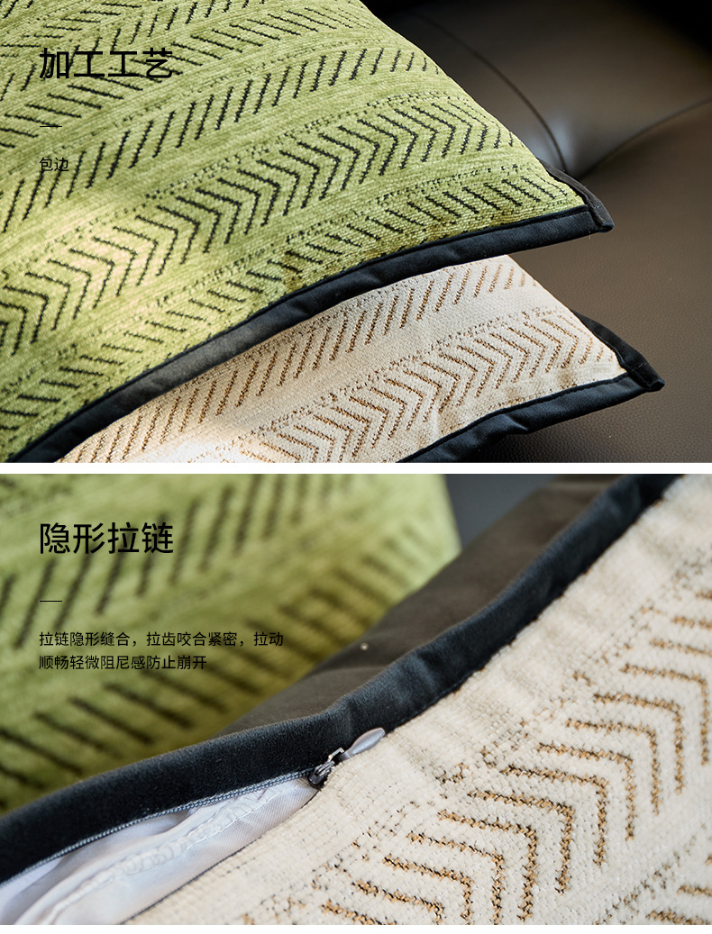 셔닐 베개 커버, 가벼운 럭셔리 및 고급 거실 베개 쿠션, 생선 뼈 패턴 자카드 복고풍 예술적 소파 베개