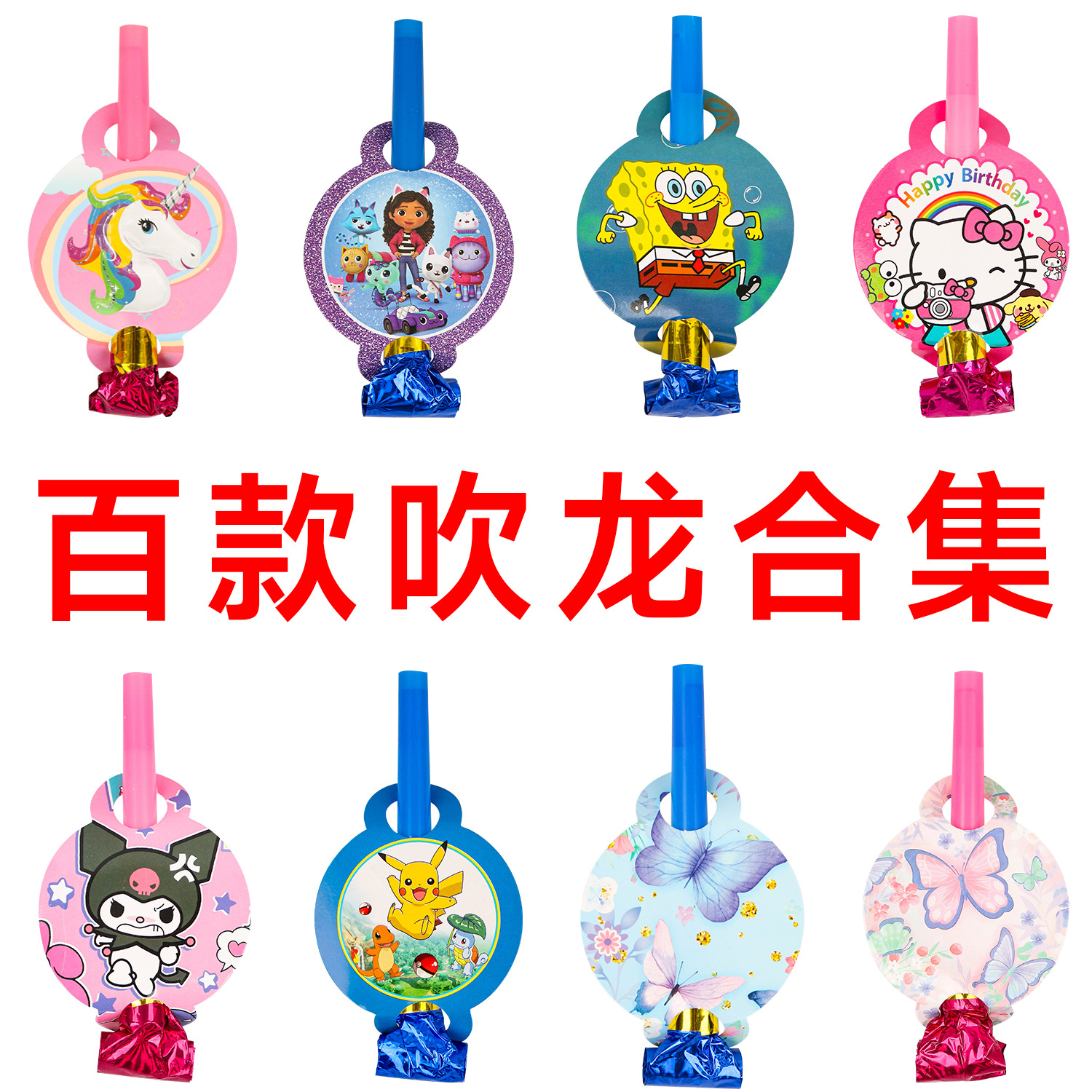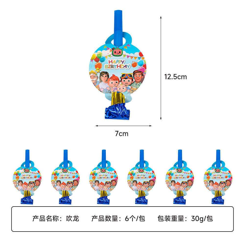 공장 재고 용 트럼펫 응원 휘파람 생일 파티 만화 장난감 소품 롤 입을 부는 어린이 용