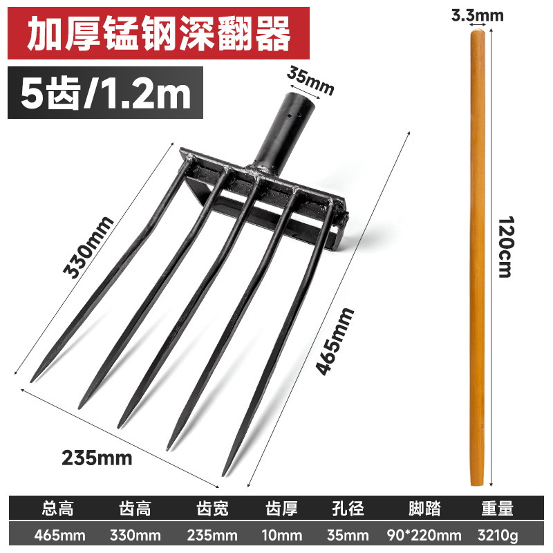 • 【5개 치아】두꺼운 쟁기질 강철 포크